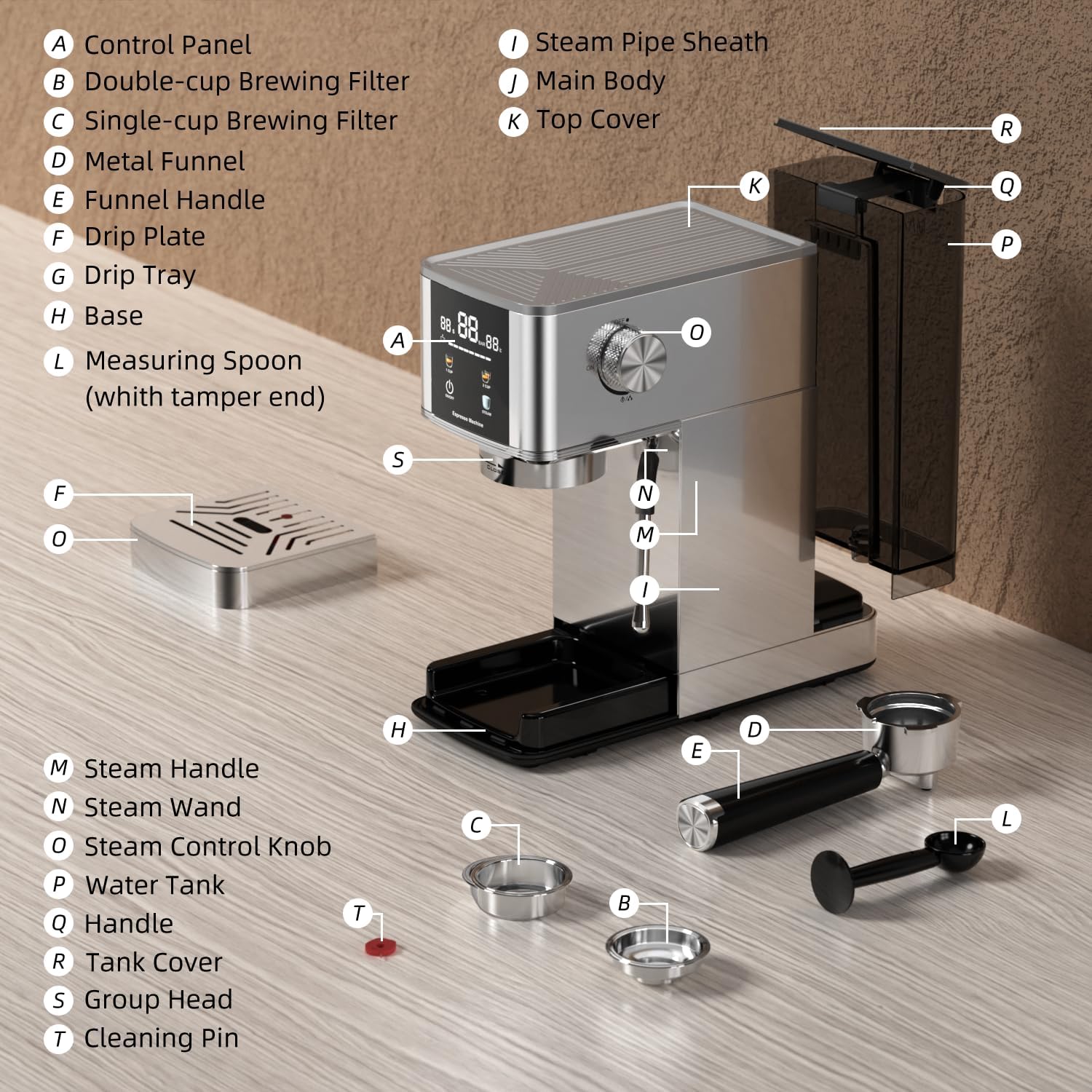 Unleash your inner barista with the powerful, built-in steam wand. Designed to create silky, micro-foam milk, it allows you to craft creamy lattes, frothy cappuccinos, and even practice your latte art skills right in your kitchen. The intuitive touchscreen interface simplifies the brewing process, giving you precise control over your coffee creation with just the touch of a button. Designed with both performance and convenience in mind, the machine features a generous 40oz (1.2L) removable water tank that minimizes the need for constant refilling and a compact footprint that fits perfectly on countertops without clutter. This all-in-one coffee station is not just an appliance; it is the ultimate gift for coffee lovers looking to enjoy café-quality beverages from the comfort of home.