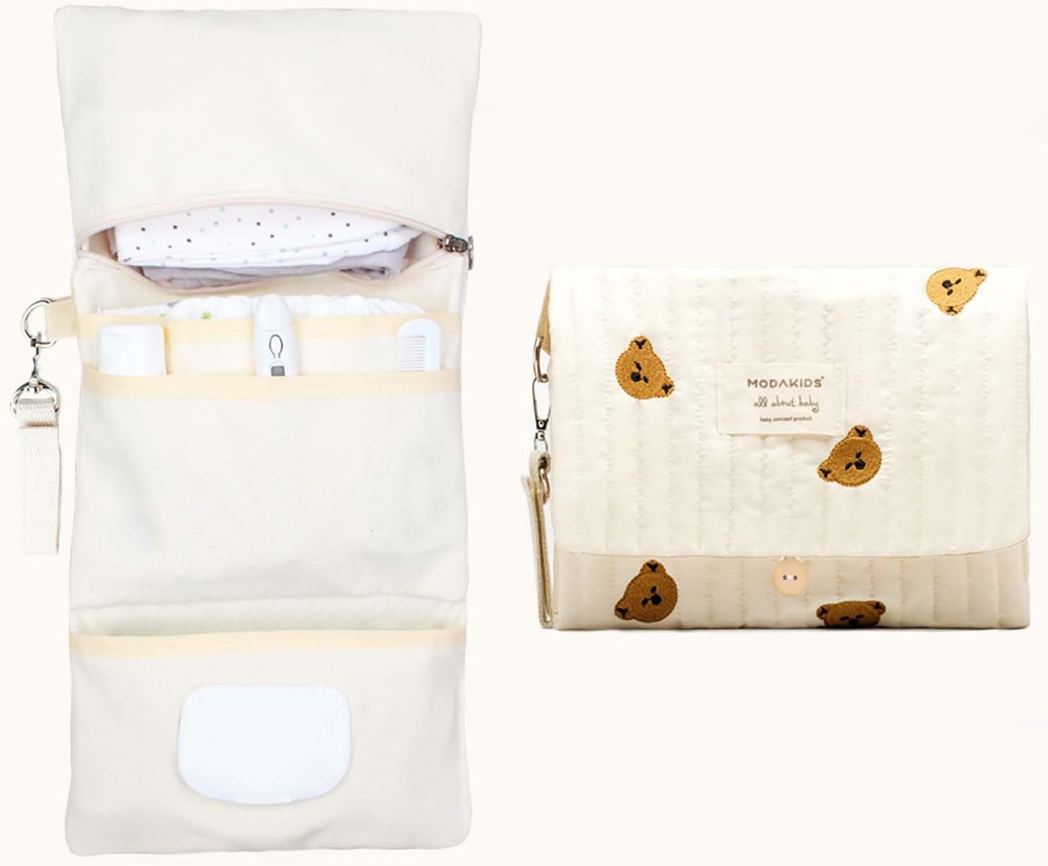 Waterproof and Durable: Crafted with meticulous attention to detail, the quilting fabric features a lovely bear embroidery pattern that adds a whimsical edge to your parenting accessories. The cream color palette adds timeless appeal, suitable for both boys and girls.