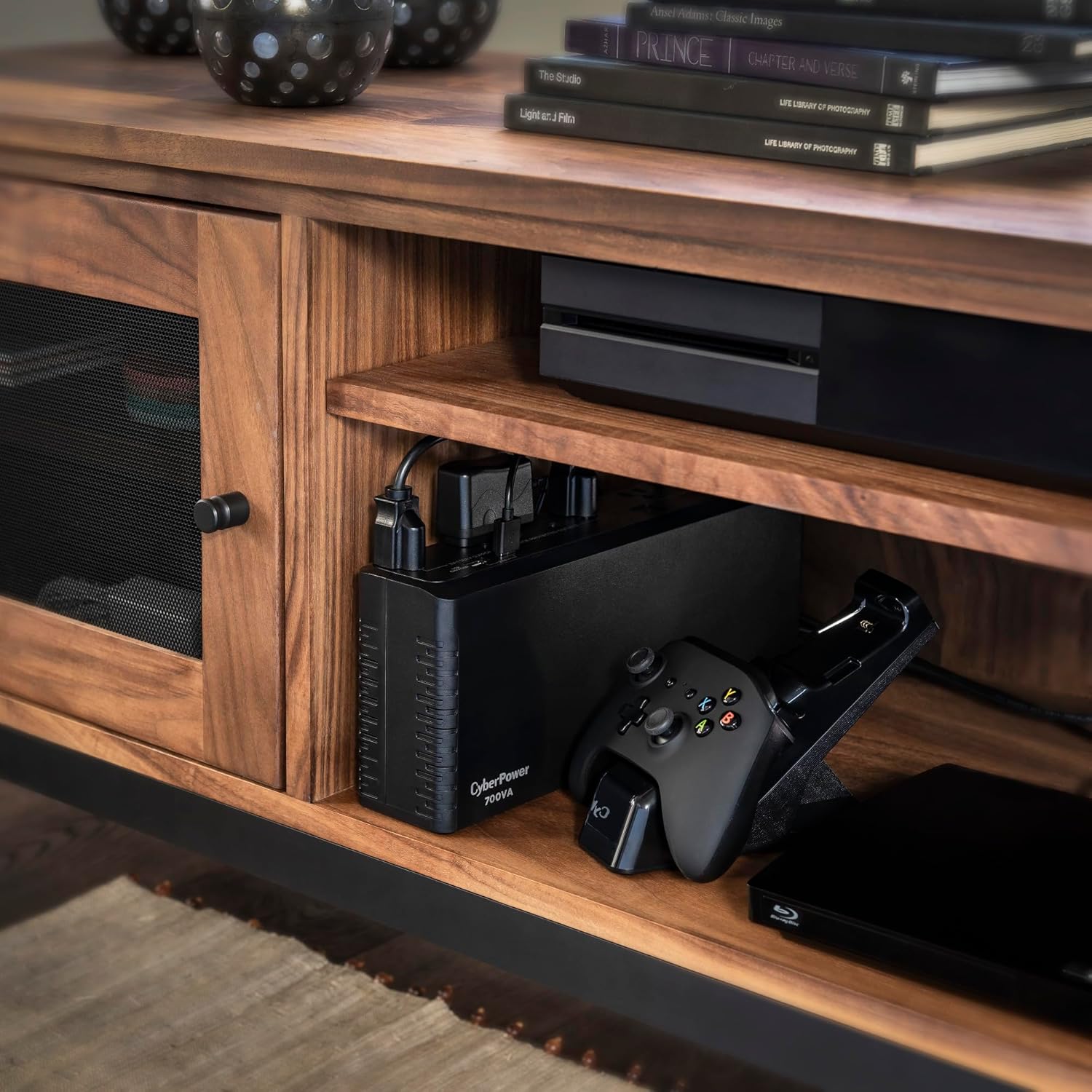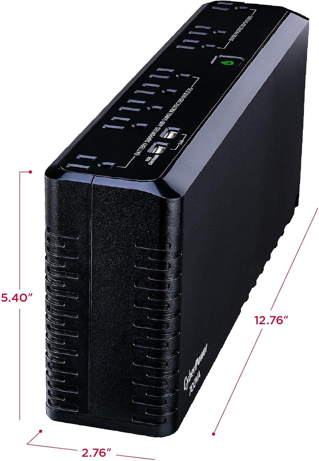 This unit is engineered for versatility and convenience. It features eight total outlets (four battery backup, four surge only) to accommodate all your essential peripherals. The slim, space-saving design fits easily under desks or entertainment centers, while the integrated keyhole slots allow for wall or bracket mounting to free up floor space completely. Additionally, the unit includes two USB ports (Type-A) with a 2.4A shared output, enabling you to charge smartphones, tablets, and other mobile devices directly from the UPS—even when the power is out.