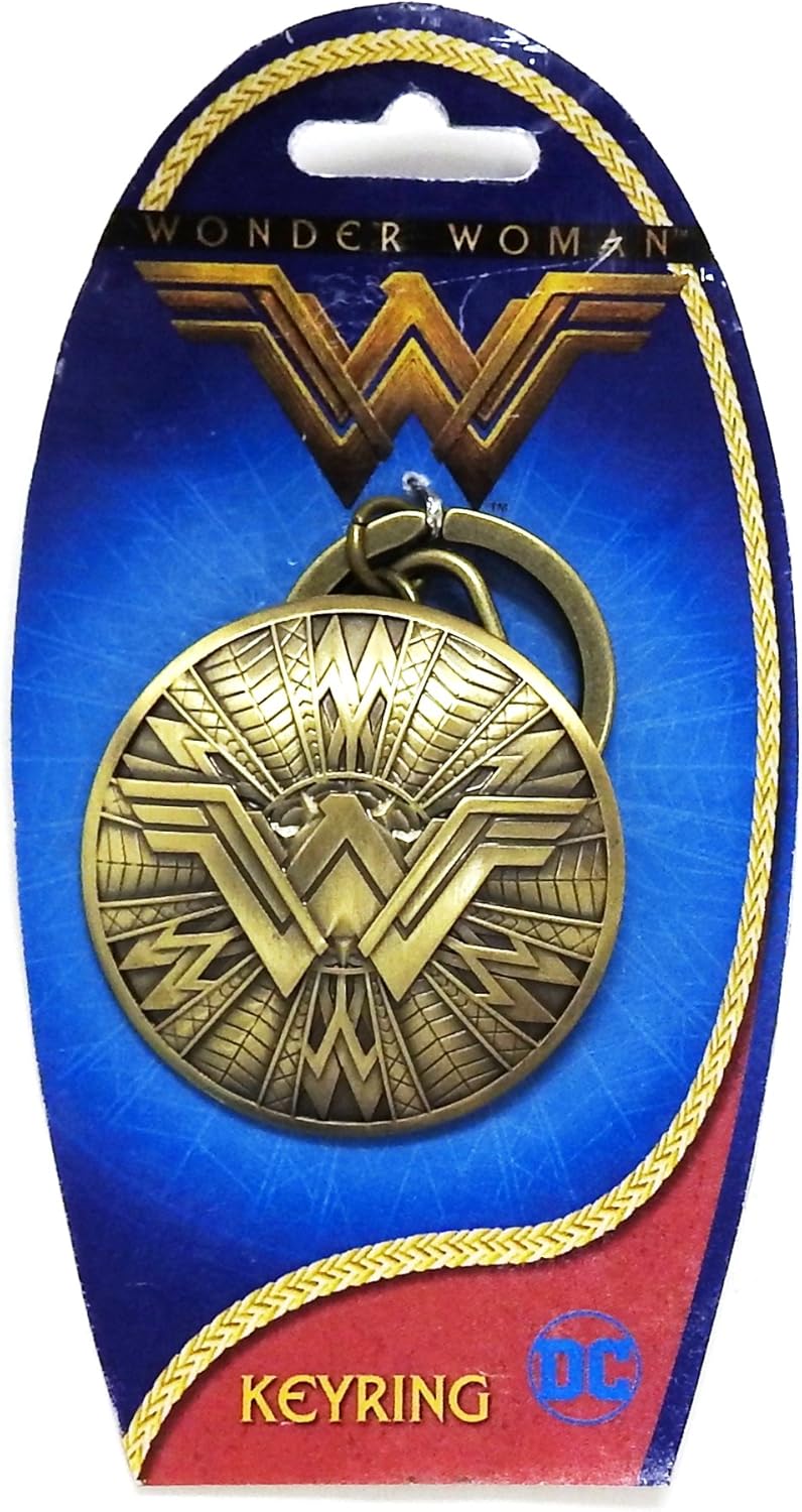 Officially licensed DC Comics Wonder Woman key ring. Premium pewter construction with gold finish. 3-inch shield design. Perfect gift for superhero fans.