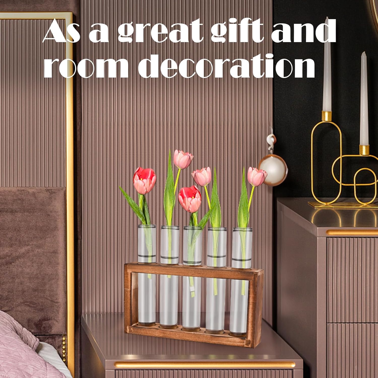 - Vintage Aesthetic & Modern Design: Crafted from natural pine wood, the sturdy stand features a smooth, vintage finish that complements any décor style, from rustic farmhouse to minimalist modern. The five high-boron silicon glass vases offer crystal-clear visibility, allowing you to watch the magic of root growth in real-time.