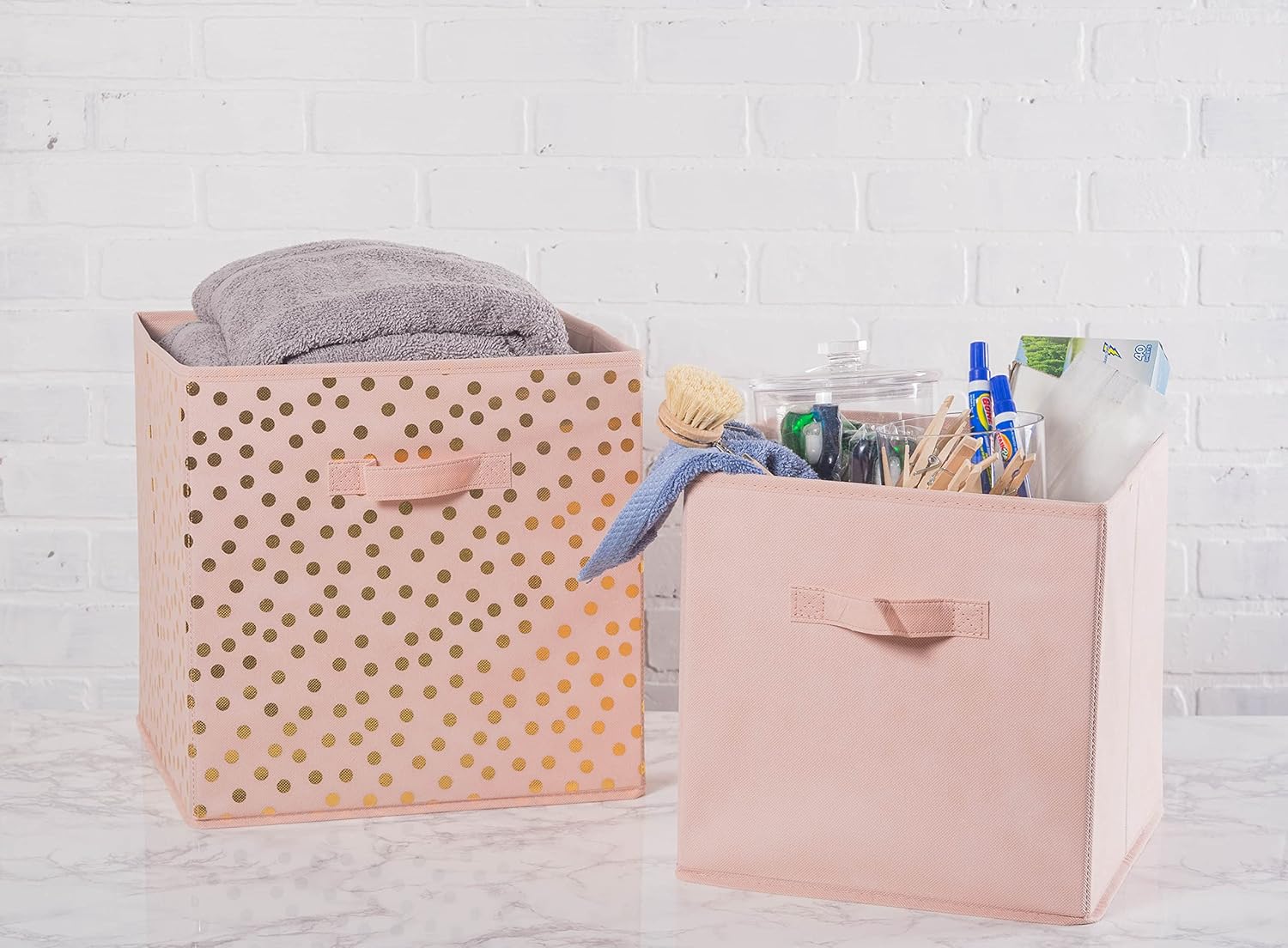 • CHIC PINK & GOLD DESIGN: Elevate your home decor with DII’s stylish polka dot storage bins. The trendy pink and gold color palette adds a vibrant, sophisticated touch to nurseries, bedrooms, and living rooms.