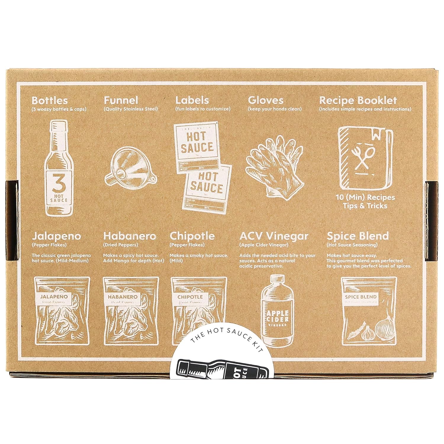 WHAT’S INCLUDED IN THE DELUXE EDITION: We don’t skimp on the ingredients. This comprehensive gift box comes equipped with 3 varieties of sun-ripened dried chili peppers (Jalapeno, Chipotle, and Habanero), a premium gourmet spice blend, 3 glass bottles with caps, 16 customizable labels, a stainless steel funnel, and even safety gloves. Plus, we’ve included 100 pH test strips to ensure your batch is perfectly preserved.