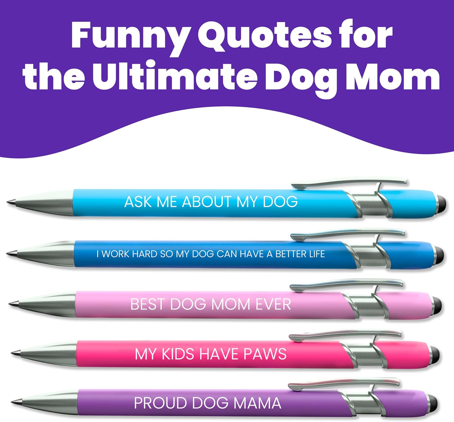 CELEBRATE THE DOG MOM LIFESTYLE: She treats her dog like royalty, so her office supplies should reflect that passion. This premium 5-piece pen set is the ultimate gift for the devoted “Dog Mom” in your life. Whether she’s a proud puppy parent, a dedicated vet tech, or simply believes that “dog hair is a condiment,” these pens will make her smile every time she clicks the top.