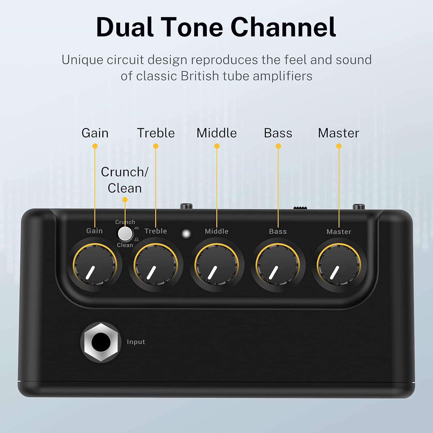 Versatile Tonal Control: Switch between two distinct channels to explore a wide range of genres. From pristine clean tones to warm overdrive and that classic British-style crunch, the DA-10 covers it all. The intuitive control panel includes Gain, Master, and a 3-band EQ (Bass, Middle, Treble), allowing you to sculpt your perfect sound with precision.