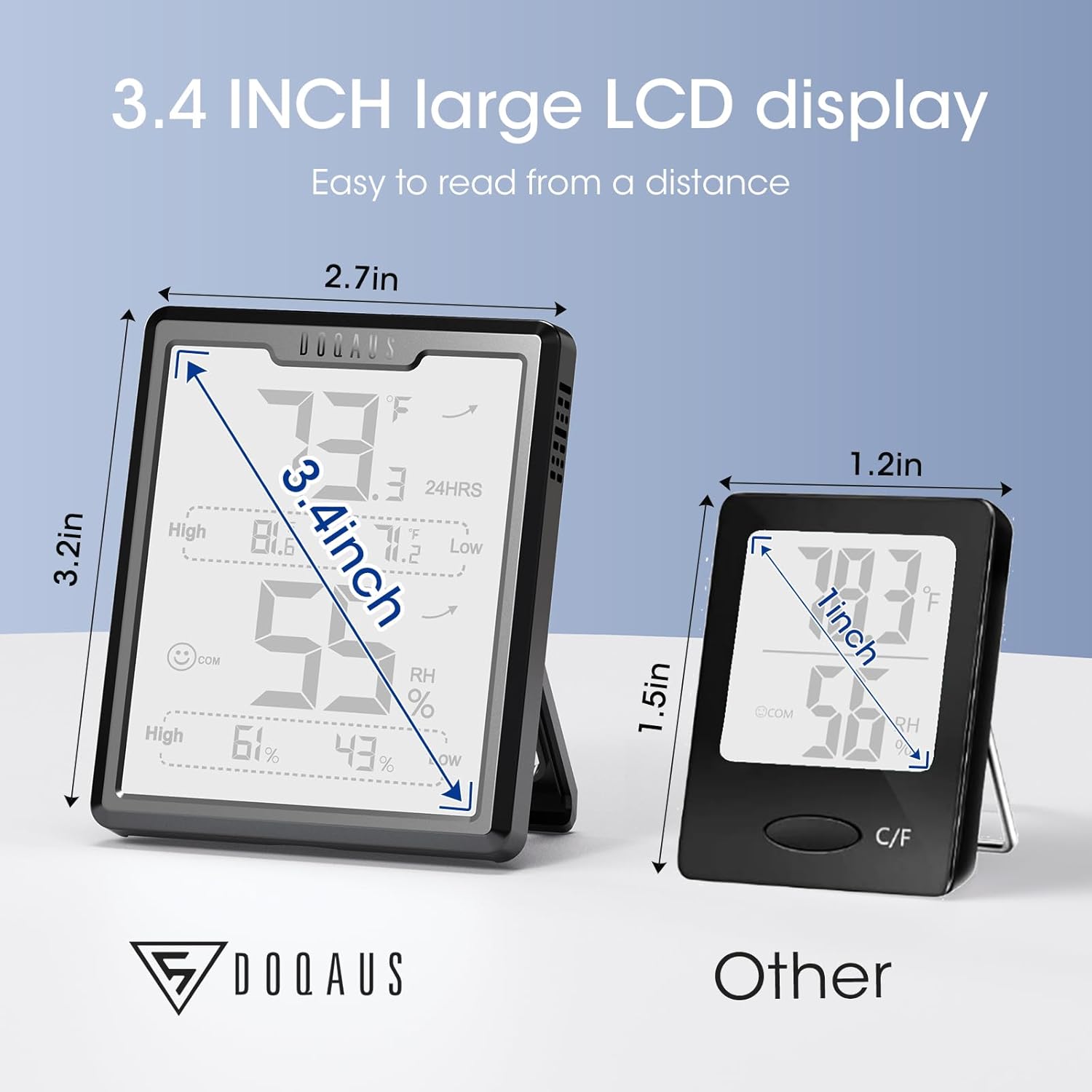 Ensure your home environment remains safe and comfortable with the DOQAUS Upgraded Digital Hygrometer. Designed for precision, this device features a high-accuracy smart sensor that refreshes every 5 seconds, providing real-time data with a temperature accuracy of ±2°F and humidity accuracy of ±2-3% RH. The large, 3.4-inch LCD display features bold, easy-to-read numbers, allowing you to monitor conditions from a distance or at an angle.