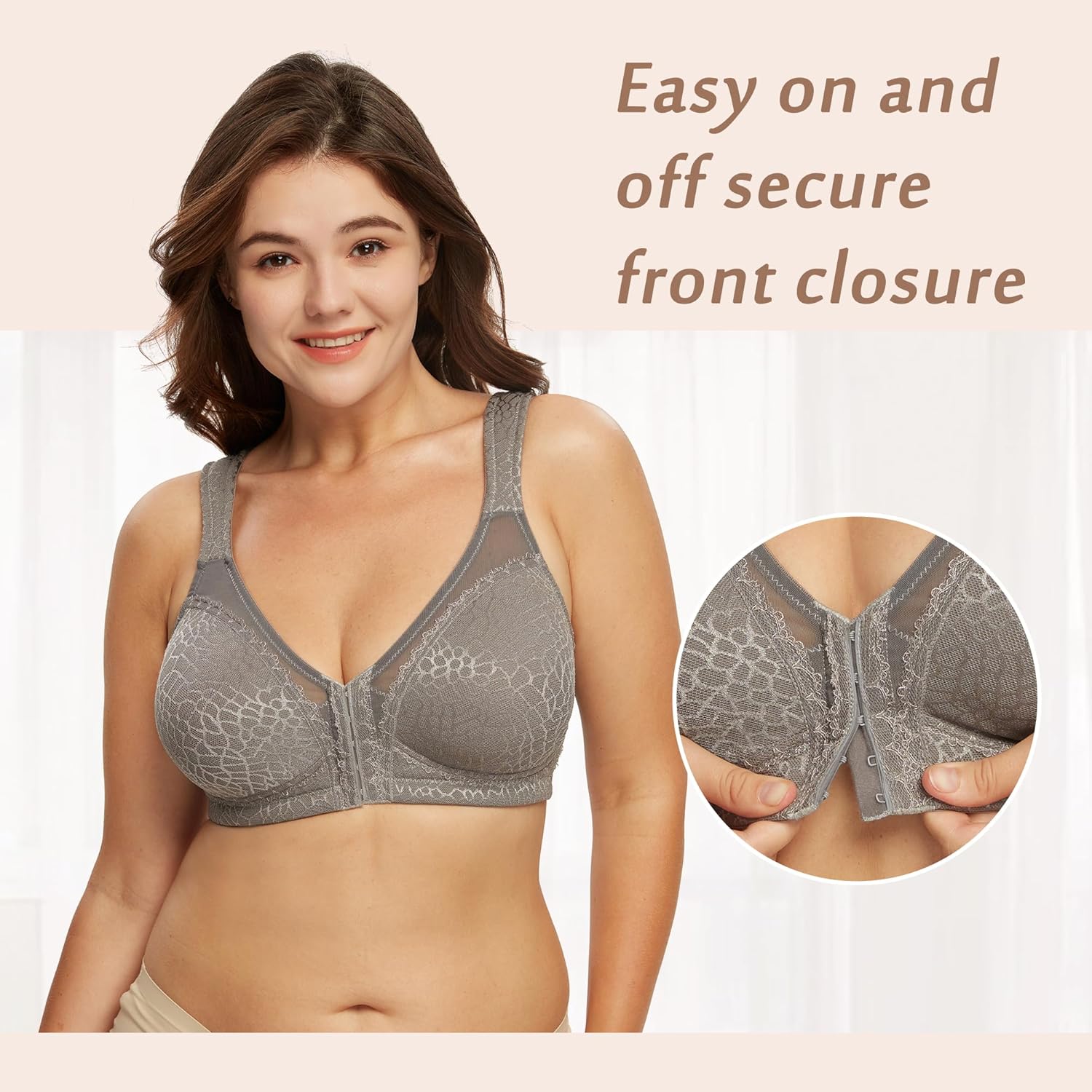 - EASY FRONT CLOSURE: Convenient front hooks make putting on and taking off the bra effortless.
