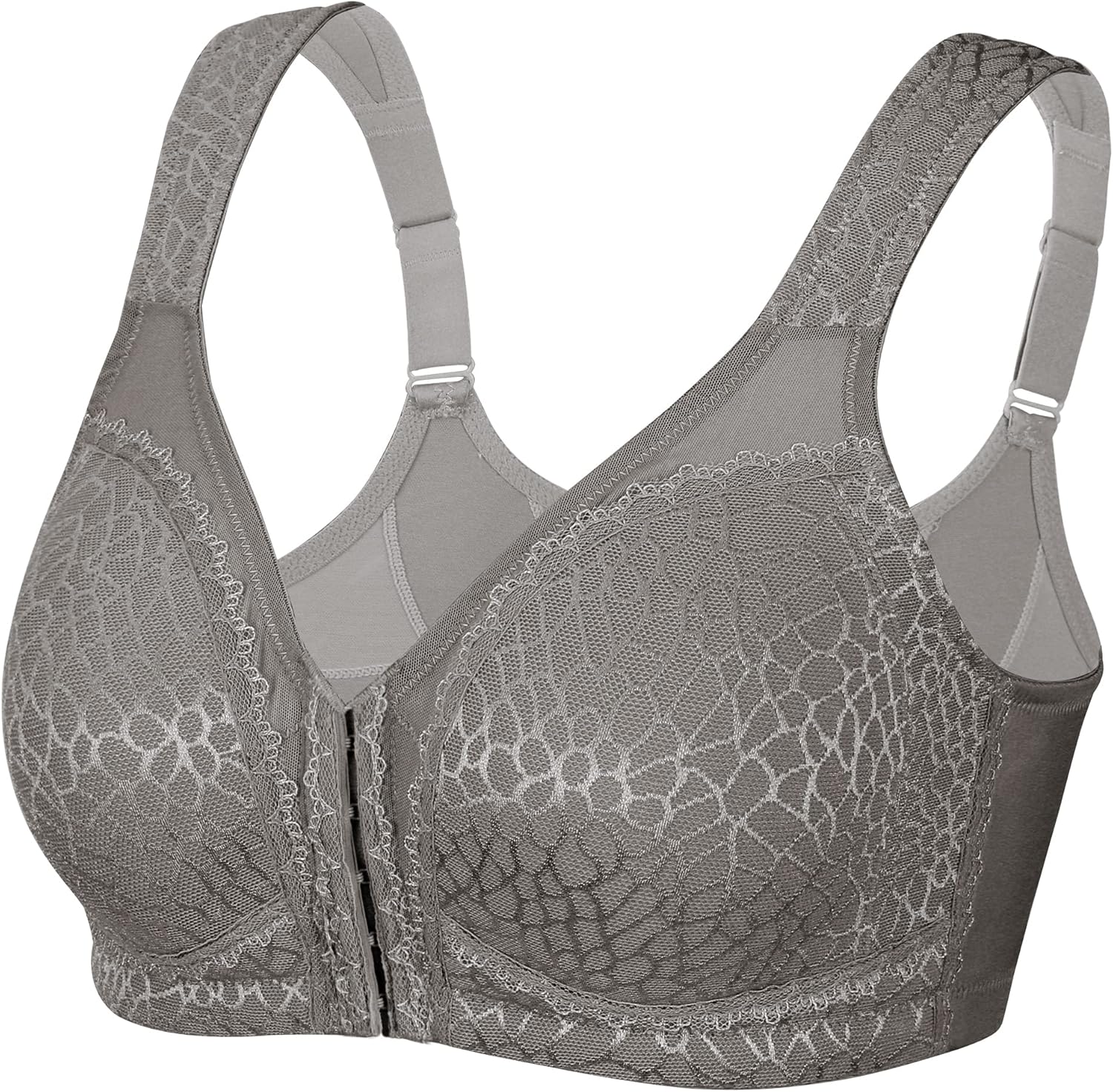 DotVol Women’s Plus Size Full Figure Front Closure Posture Support Bra – Wireless Jacquard Lingerie for Back Pain Relief & Comfort
