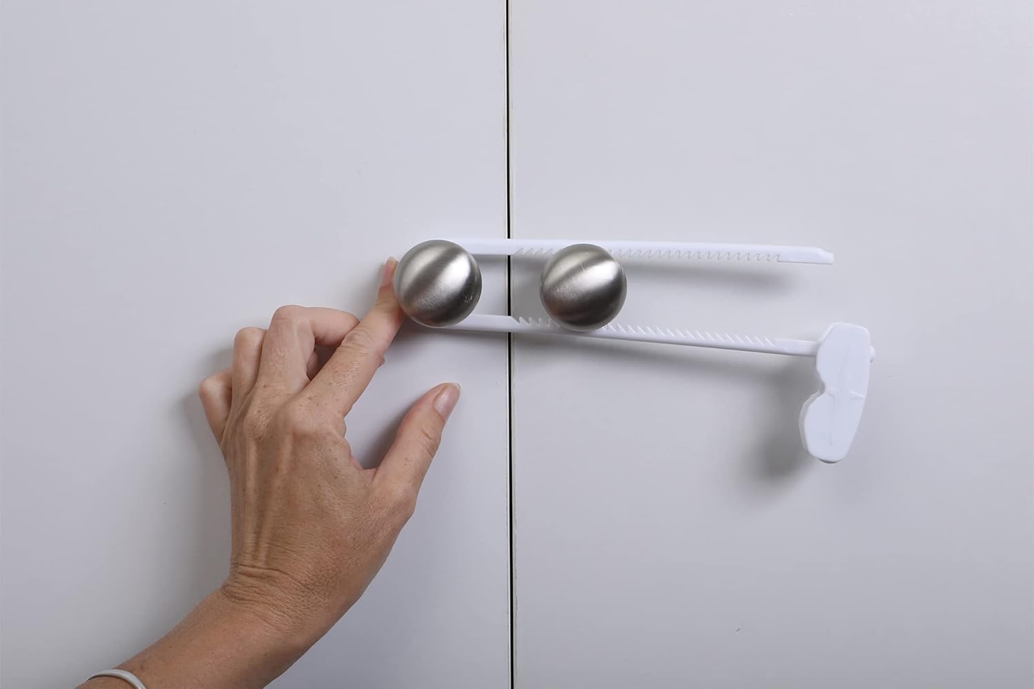 - INSTANT CHILDPROOFING: Fastest and most secure way to lock cabinets without tools or installation. Simply push down and slide tight.