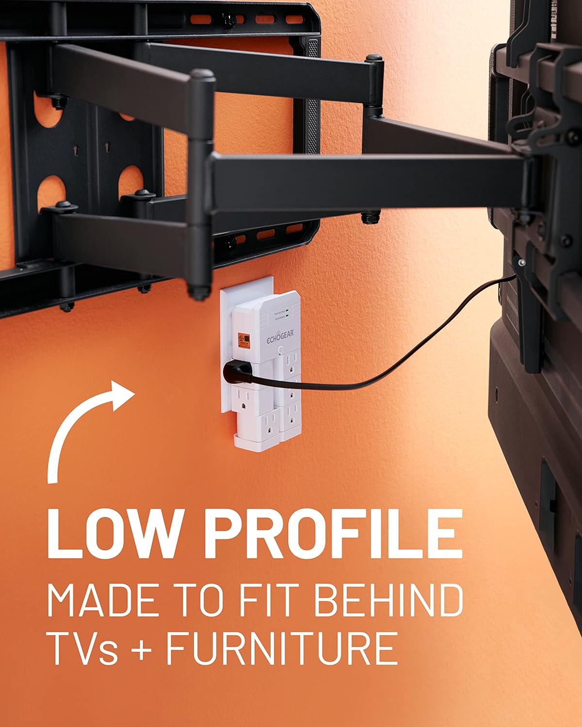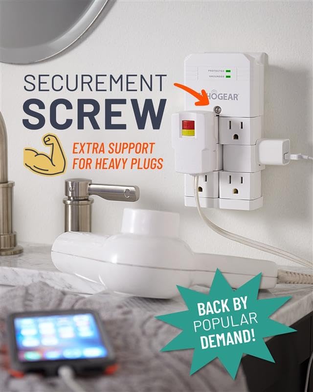 Upgrade your home’s electrical safety with the ECHOGEAR On-Wall Surge Protector. Designed to fit seamlessly over your existing outlets, this white surge protector features a low-profile 1.50-inch design that keeps your cables organized and your furniture flush against the wall. Equipped with 6 pivoting AC outlets, it triples your outlet capacity, allowing you to easily accommodate bulky power bricks without blocking adjacent plugs. With a robust 1080 Joule rating, this device shields your valuable electronics from harmful power spikes and surges. It also features integrated EMI/RFI filtering to eliminate dirty power and reduce signal interference for a cleaner audio/video experience. Safety is paramount; this unit is UL safety certified and includes a fireproof MOV to ensure maximum protection. Plus, it comes backed by a 5-year connected equipment warranty of up to $25k. Installation is quick and effortless using the included securement screw. If you have any questions, our Minnesota-based product experts are available 7 days a week to assist you.
