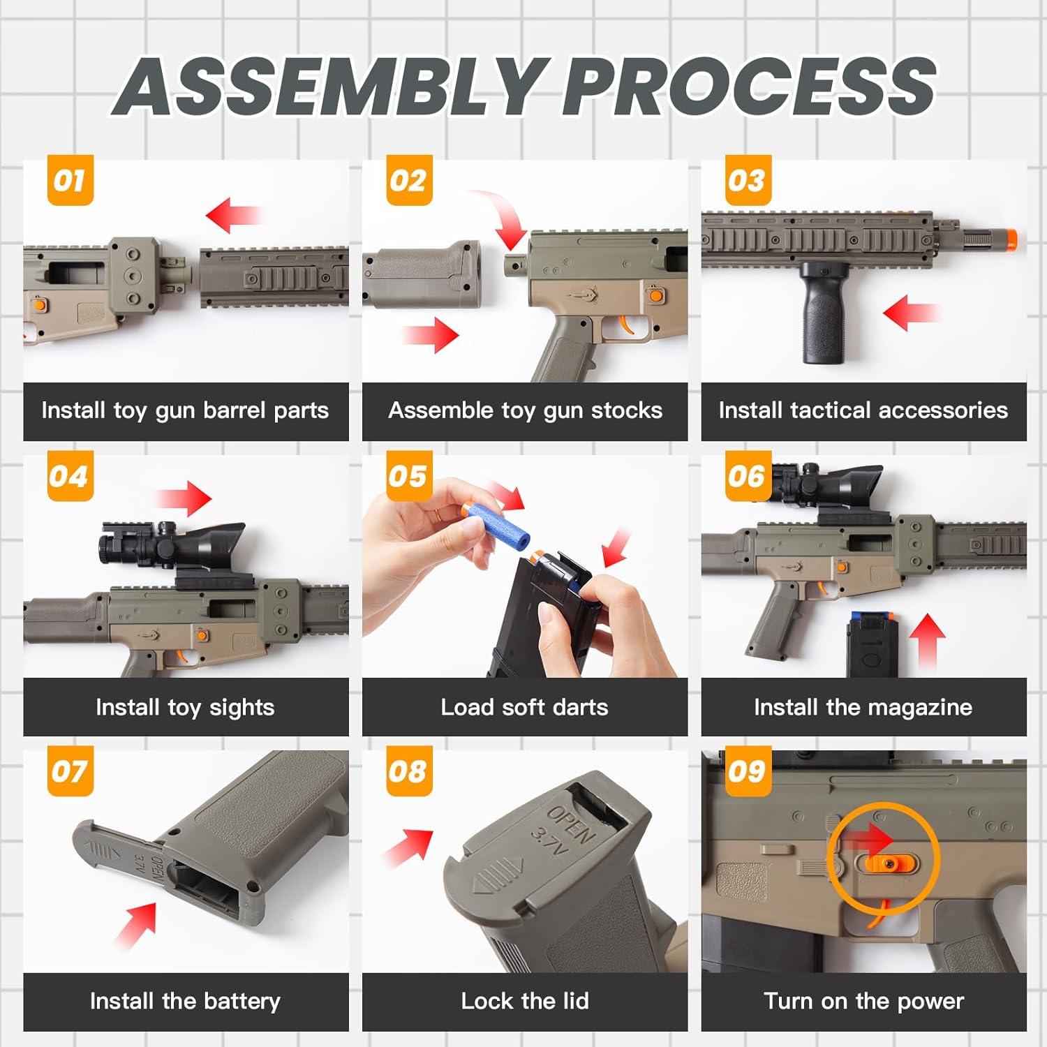 Safety First: Features bright orange safety markings and uses soft, harmless EVA foam bullets.