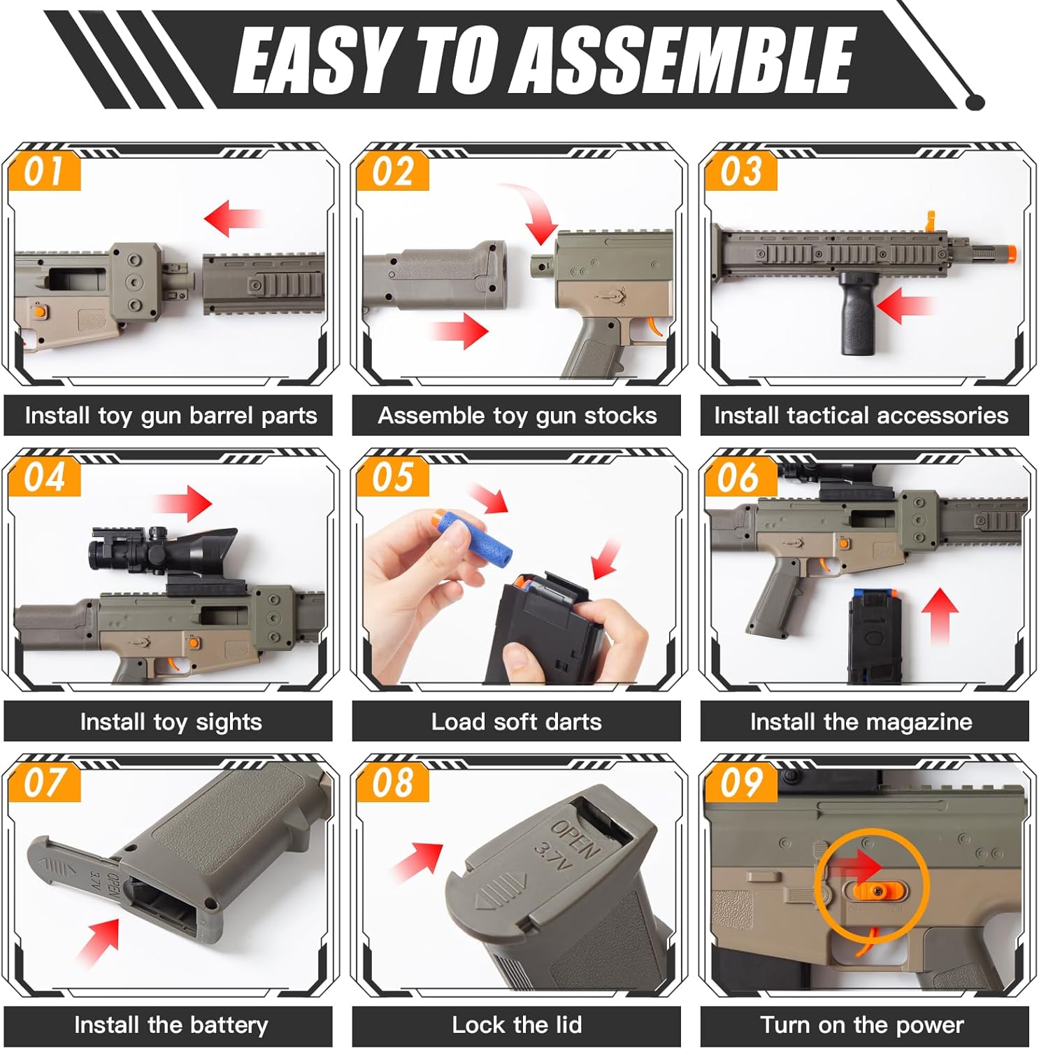 Crafted to mimic the look of a professional AR rifle, this blaster features a durable design suited for active play. It meets strict safety standards with a bright orange muzzle and trigger markings. It is the perfect gift for boys and girls aged 6+, making it an ideal surprise for birthdays, Christmas, or holidays.