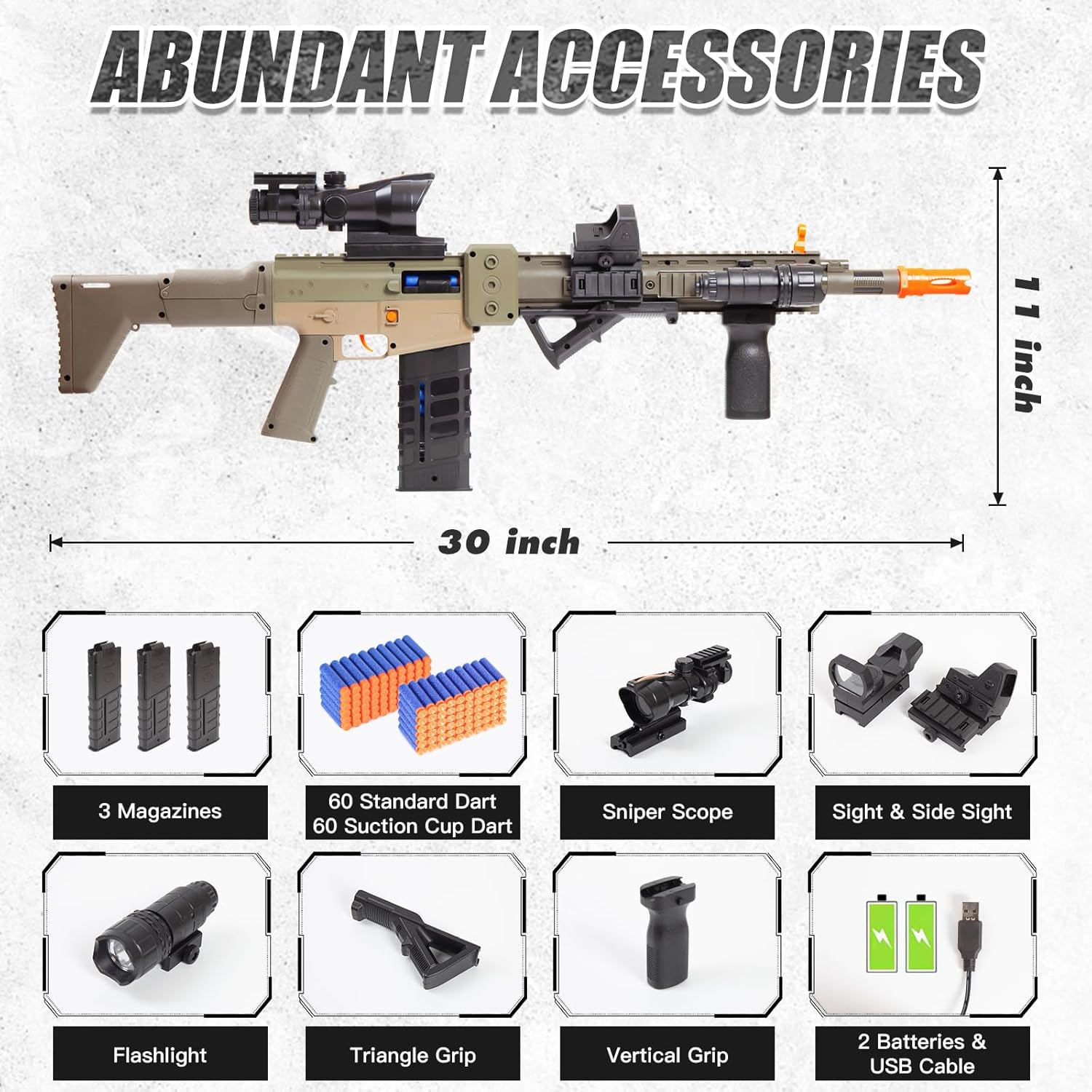 Electric Sniper Rifle Toy Gun for Nerf Wars – 28” Semi-Auto Foam Blaster Kit with Scope, 120 Darts & 3 Magazines – Ultimate Tactical Gift for Boys 8-12