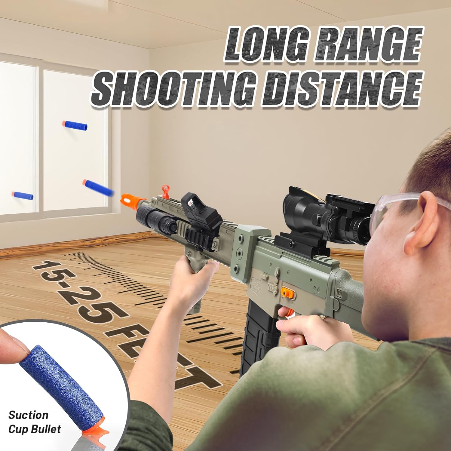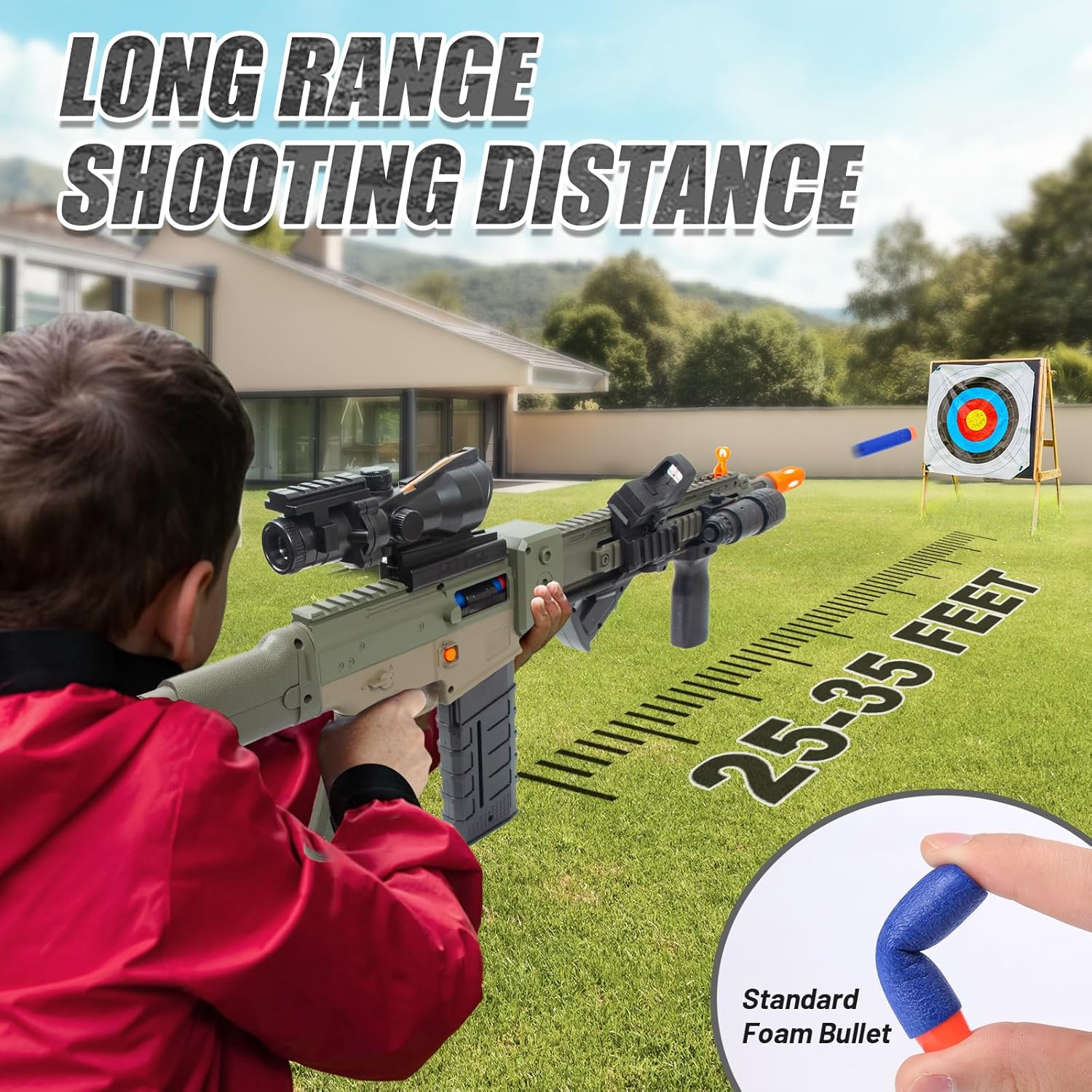 • TACTICAL SNIPER KIT: Electric semi-auto foam blaster with a realistic sniper scope, tactical grips, and flashlight for immersive play.