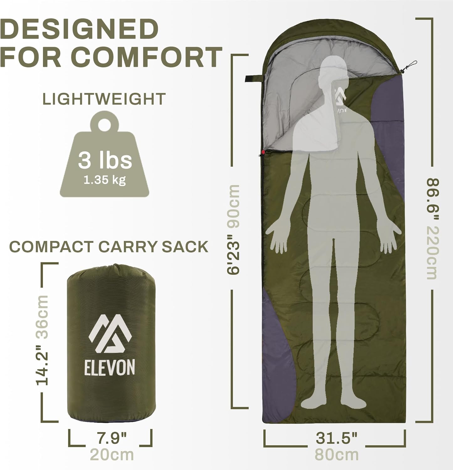Experience the great outdoors with the Elevon Sleeping Bag, designed to deliver superior comfort and warmth in any environment. Whether you are camping in the spring chill, backpacking through summer trails, or hiking in crisp autumn weather, this versatile sleeping bag is your reliable companion for 3-4 seasons.