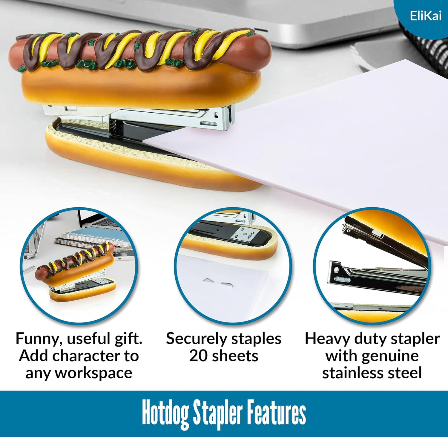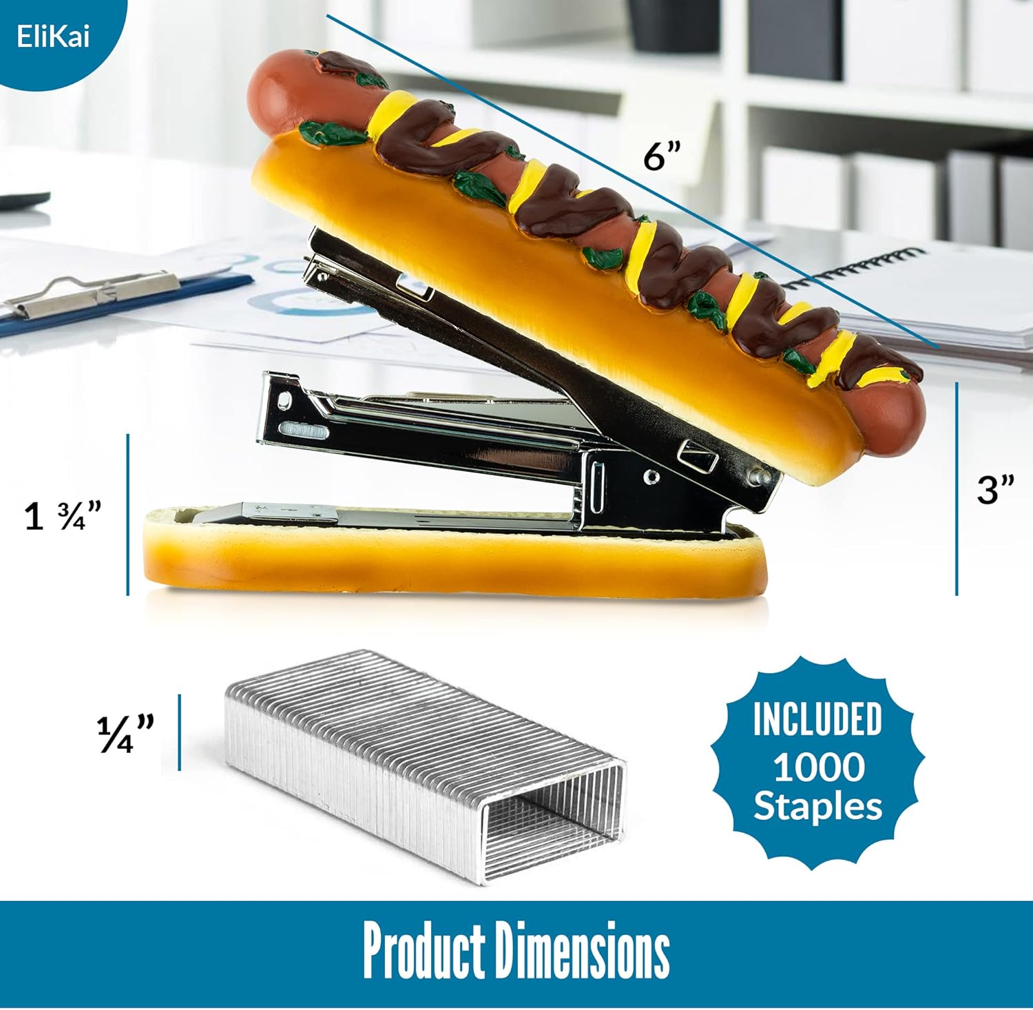 SPICE UP YOUR DESK DÉCOR: Tired of boring office supplies? The ELIKAI Hot Dog Stapler is the ultimate conversation starter for teachers, principals, and office workers. This charming ketchup and mustard-style stapler adds a dash of humor to any workspace, making it the perfect addition to a teacher’s desk or the breakroom.