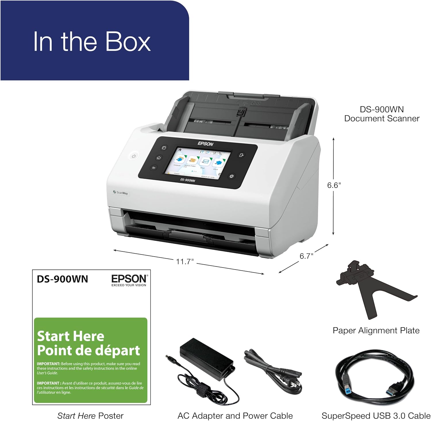 Elevate your office productivity with the Epson DS-900WN EdgeLink High-Speed Wireless Color Document Scanner. Engineered for high-volume environments, this powerful scanner delivers rapid speeds of up to 70 ppm (140 ipm) and features a robust 100-page Auto Document Feeder (ADF) to breeze through large stacks of paperwork. The intuitive 4.3-inch color touchscreen provides direct access to cloud applications and scan-to destinations, putting efficiency at your fingertips. Designed for seamless integration, the DS-900WN offers versatile connectivity options including Gigabit Ethernet and Wi-Fi, allowing you to scan directly to USB drives, email, network folders, and popular cloud services like Google Drive and Dropbox without the need for a PC. It includes Epson’s powerful Document Capture Pro software for creating editable text and searchable PDFs, making it the ultimate solution for streamlining your document management workflows.