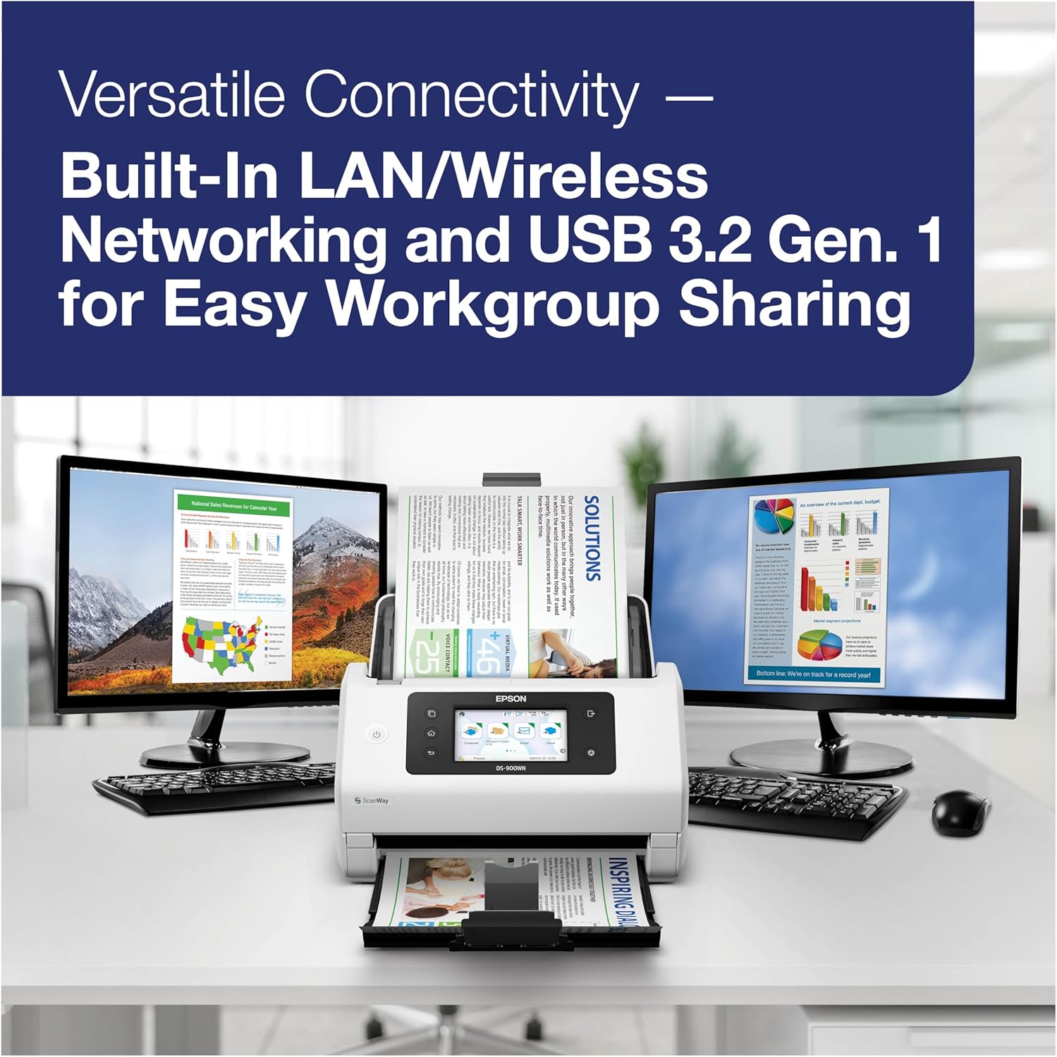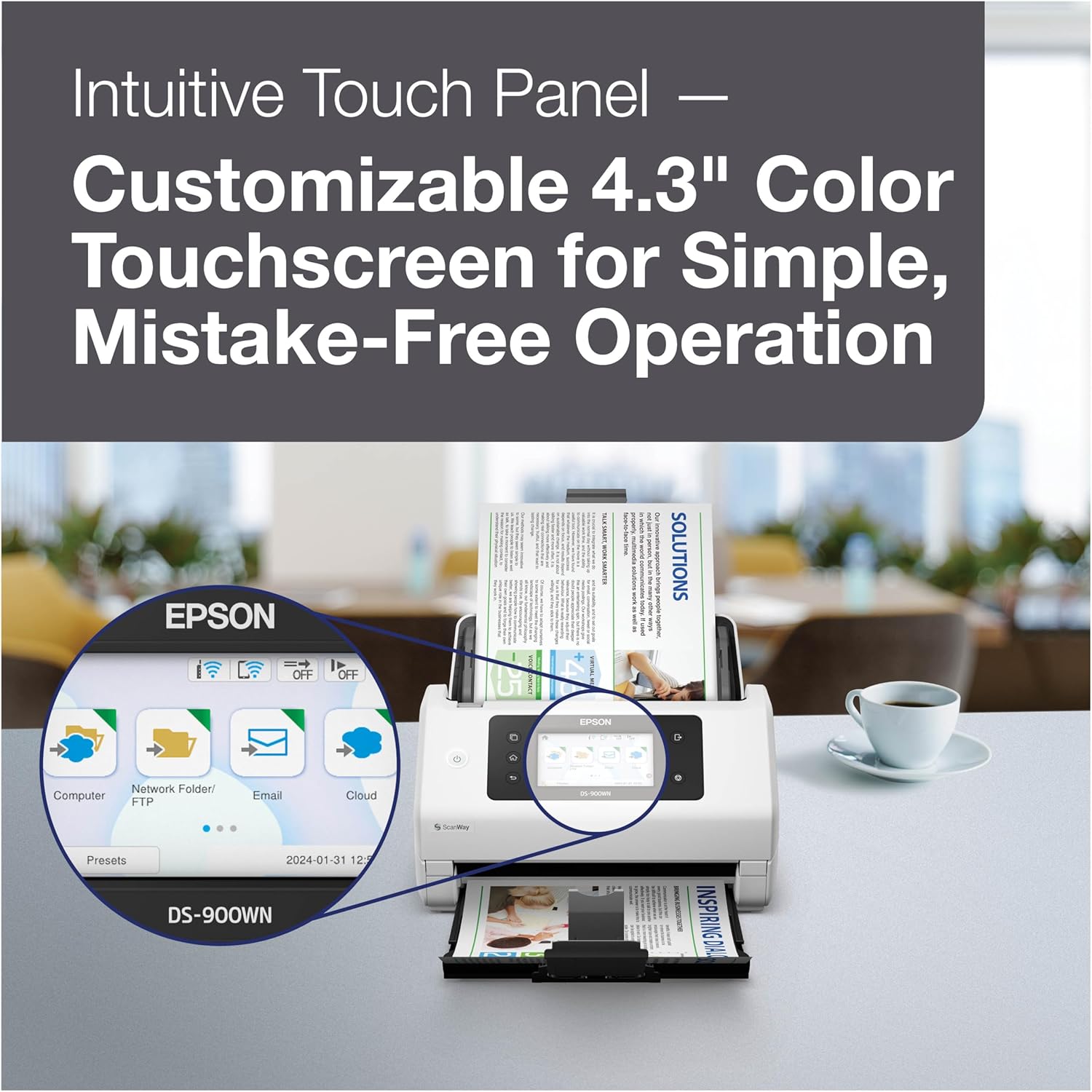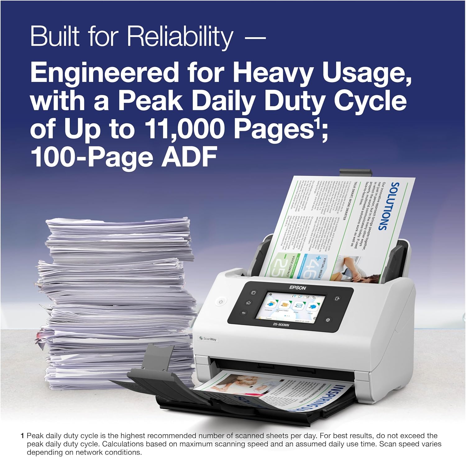 Epson DS-900WN Color Document Scanner – High-Speed 70 ppm Duplex, 100-Page ADF, 4.3inch Touchscreen & PC-Free Wireless Networking