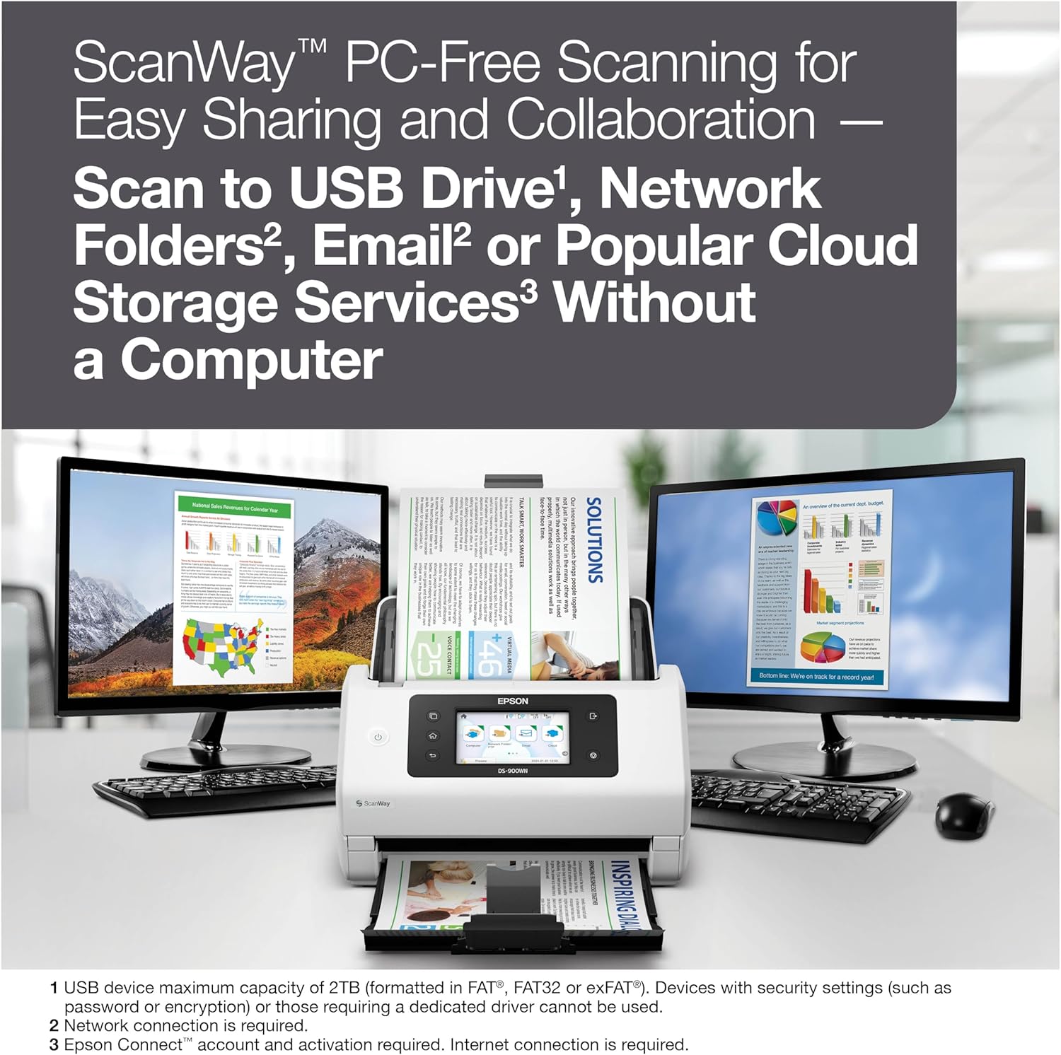 • Wireless Freedom: Scan directly to USB, email, network folders, and cloud storage services without needing a dedicated computer.