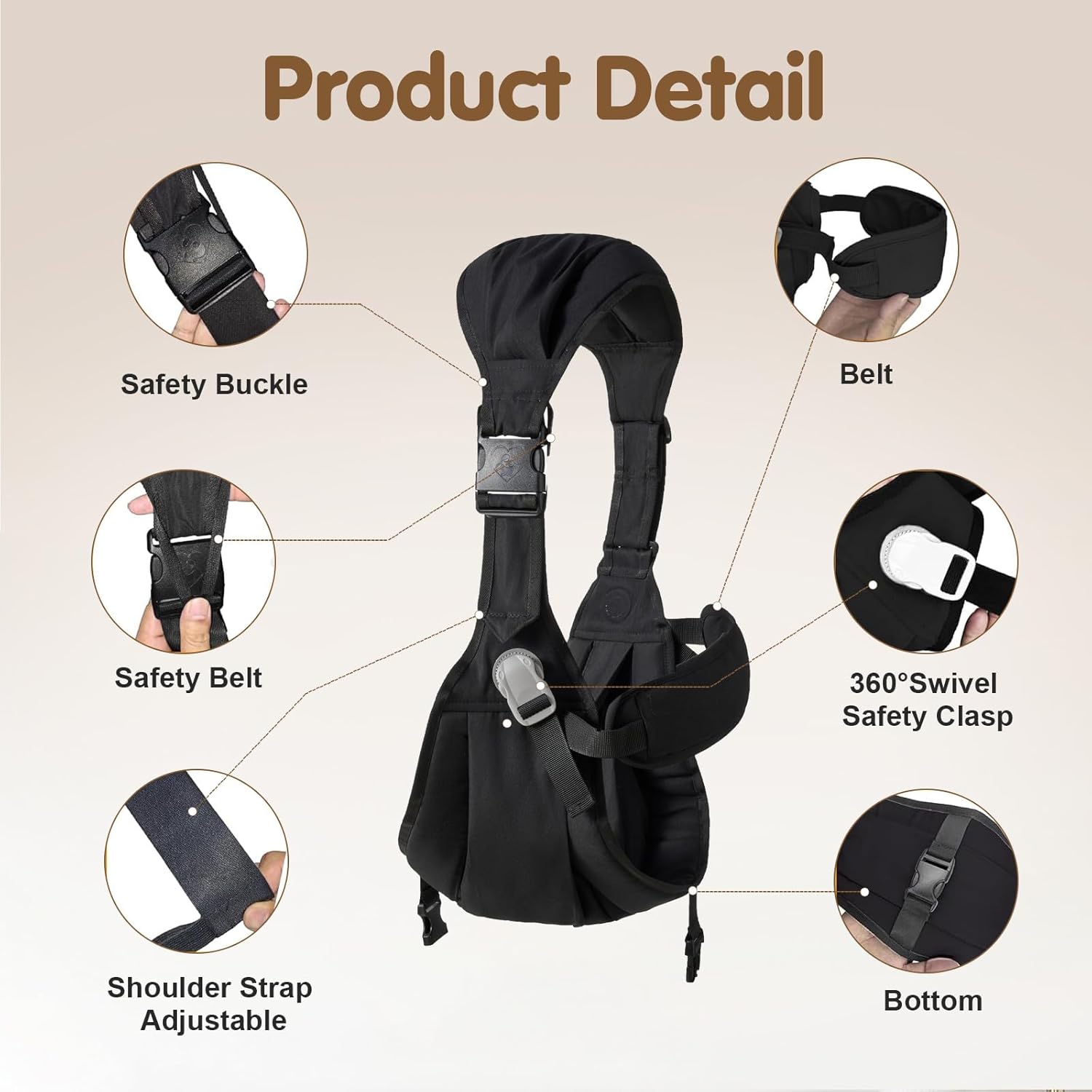 Ergonomic Baby Sling Carrier with Safety Harness – Lightweight Hip Seat for Toddlers 25-60lbs (Black)