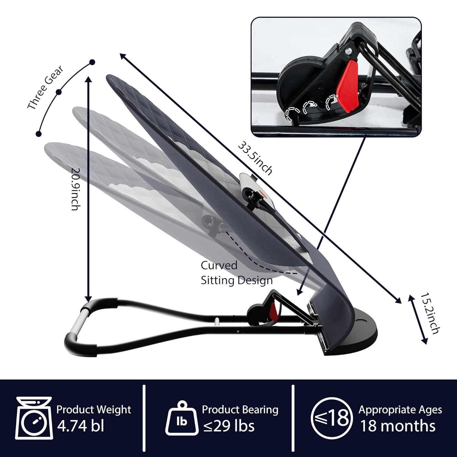 ✅ Ergonomic Spinal Support: Safety meets comfort with a design that prioritizes healthy development. The calibrated tilt angle and soft, structured fabric seat provide essential support for your baby’s head, neck, and spine, ensuring proper alignment during play or rest.