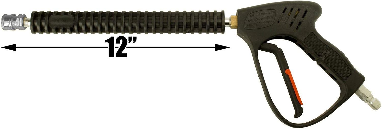 • Professional grade pressure washer gun rated for 5000 PSI, 8 GPM, and 300°F hot water
