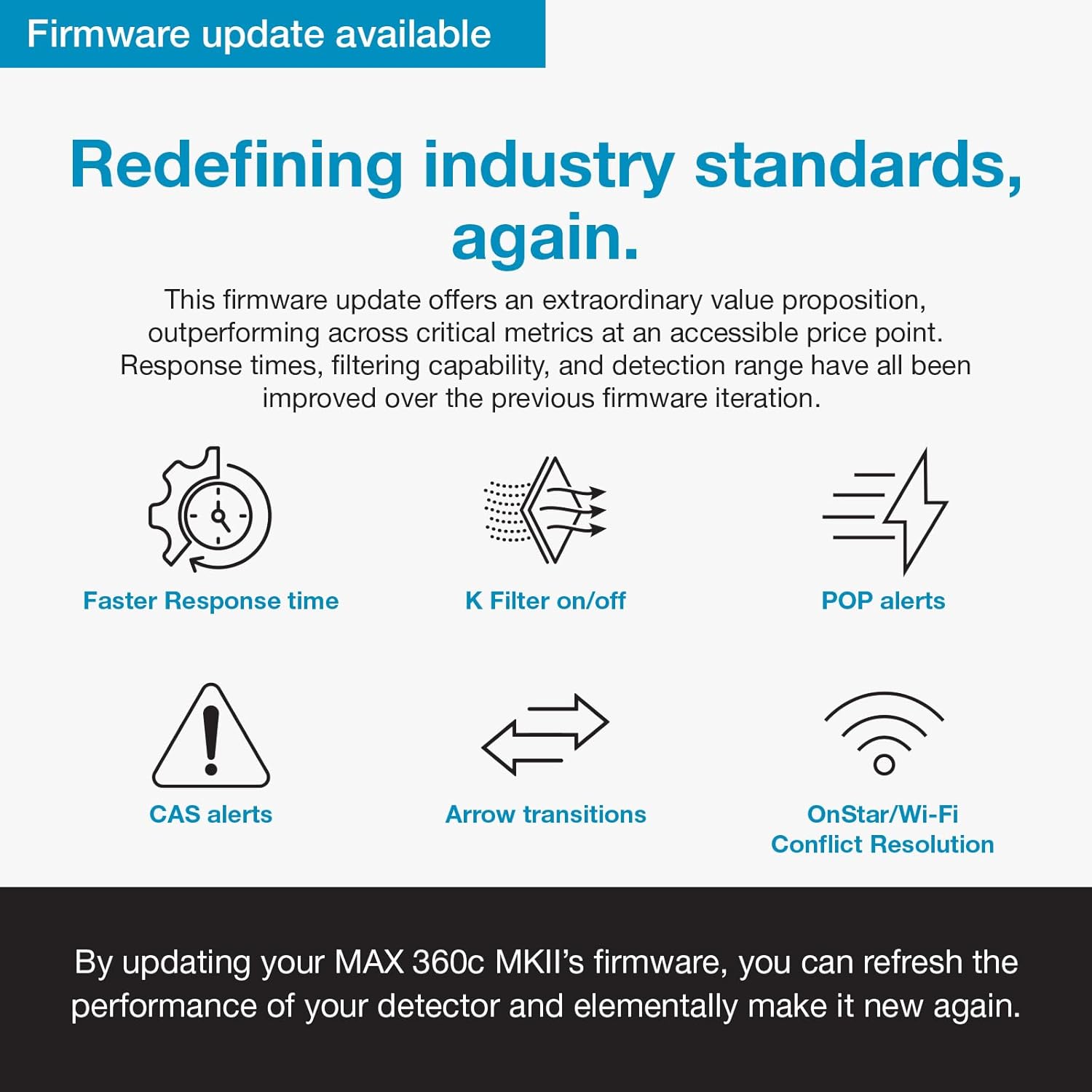 • Advanced Filtering: Next-gen IVT filtration and powerful DSP chip minimize false alerts from blind-spot monitors and traffic sensors.