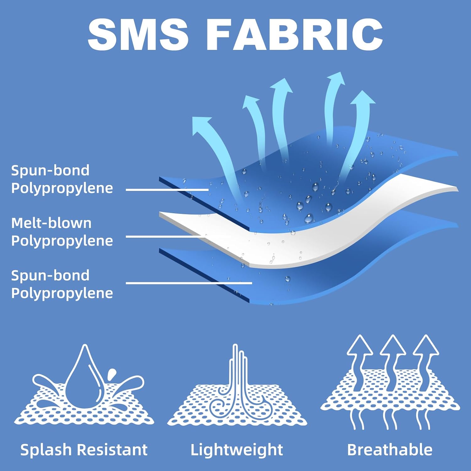 – Triple-layer SMS breathable fabric for dust & splash protection