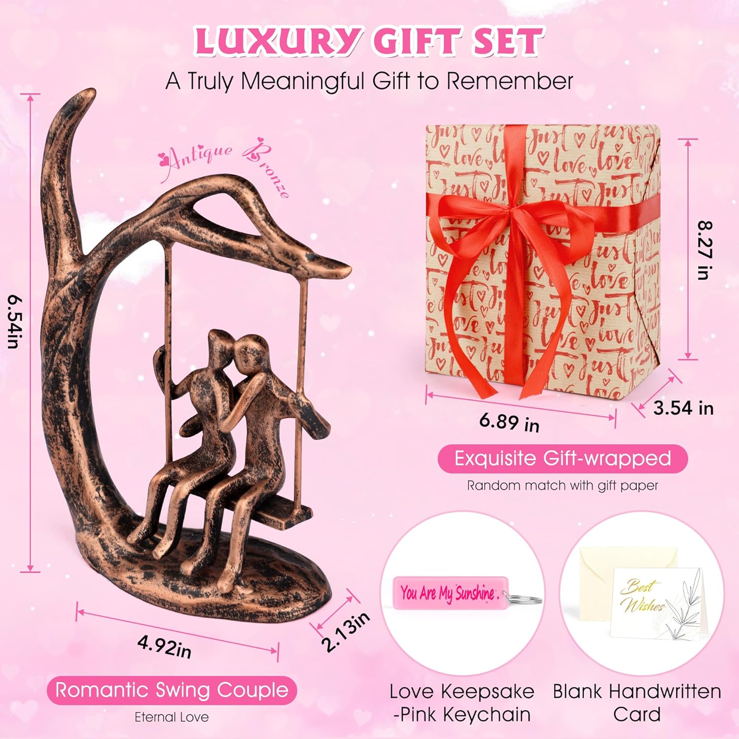 Celebrate your enduring bond with this exquisite Romantic Couple Statue Gift Set, the ultimate expression of love and appreciation. Designed to capture the essence of eternal connection, this unique set features an intricately crafted cast-iron sculpture of a couple in a tender embrace, finished with an elegant pinkish bronze patina. Measuring 4.92″ x 2.13″ x 6.54″, this durable metal figurine adds a sophisticated, artistic touch to any home décor, whether displayed on a mantelpiece, bookshelf, or bedside table.
