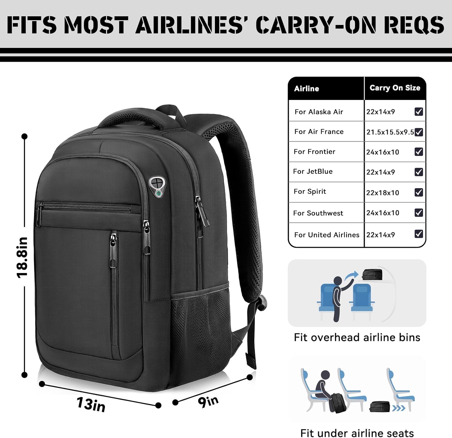 - Accessory Management: Features two main zippered pockets, ventilated mesh pockets for tech accessories, and internal organizers to keep chargers, pens, and passports neatly arranged.