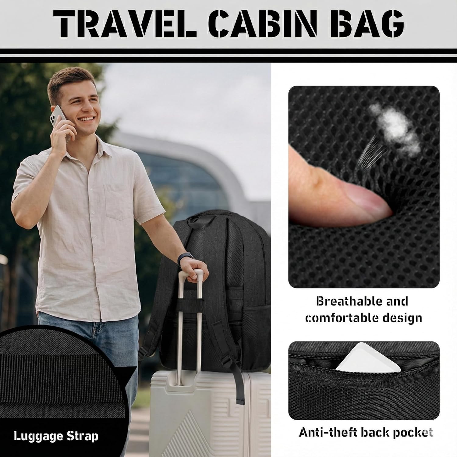 - Luggage Sleeve: The integrated trolley strap slides effortlessly over your suitcase handle, providing hands-free mobility through busy terminals.