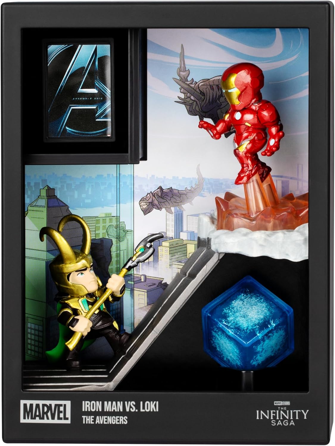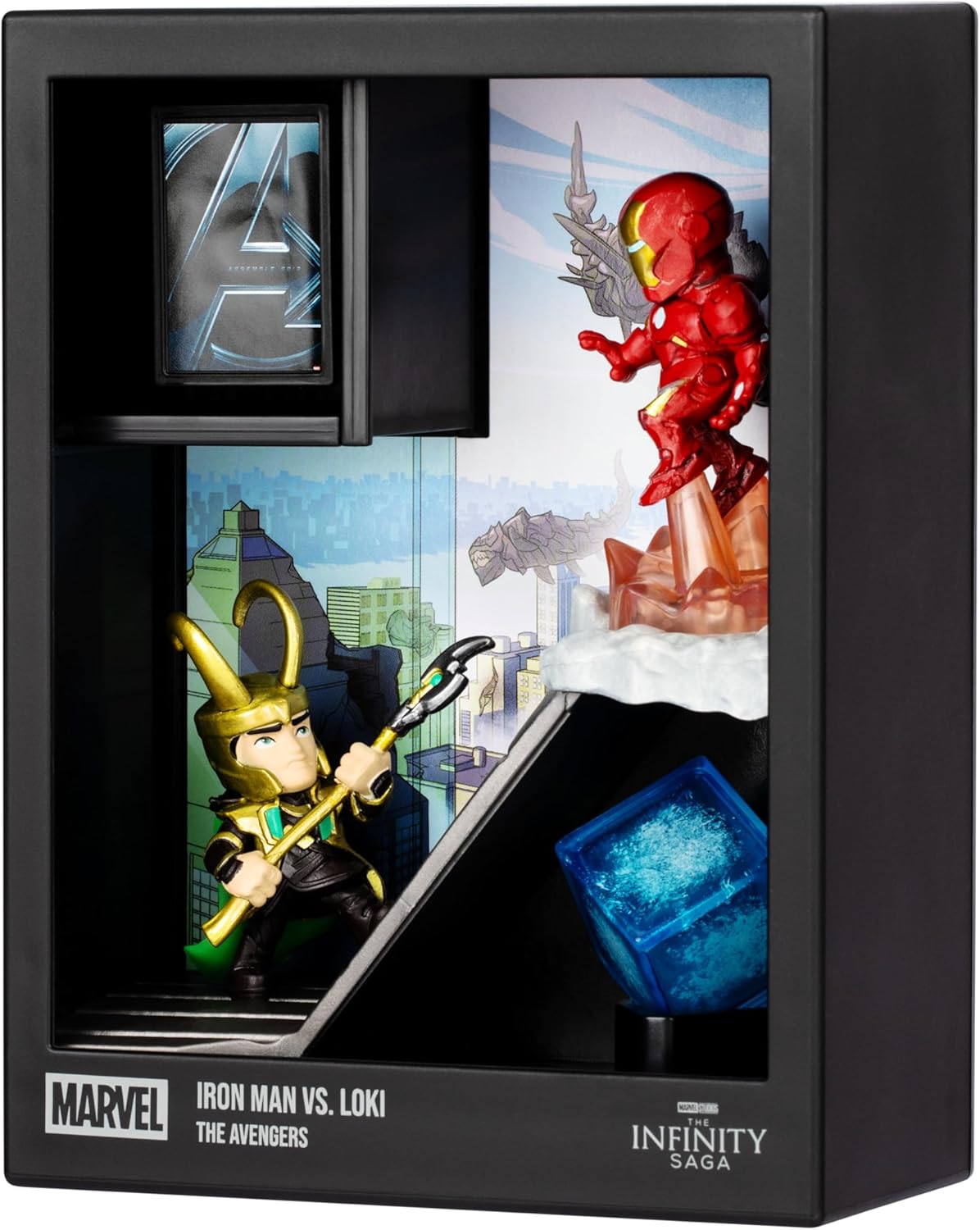 • ICONIC SHOWDOWN: Features Iron Man and Loki in a dynamic diorama setting inspired by Marvel Studios’ The Avengers.