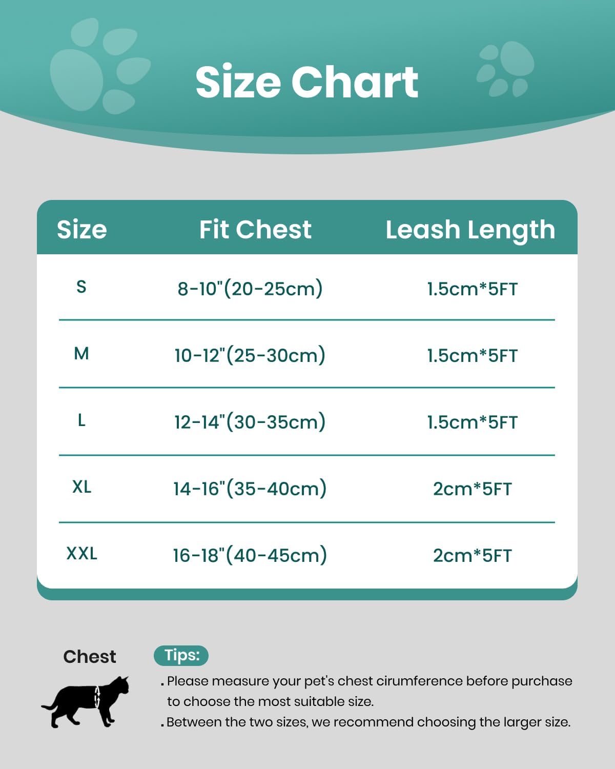 - Versatile Fit for All Pets: While designed for cats, this adjustable harness is perfect for small dogs and puppies as well. Consult our detailed size chart and measure your pet’s chest girth to find the perfect, secure fit.