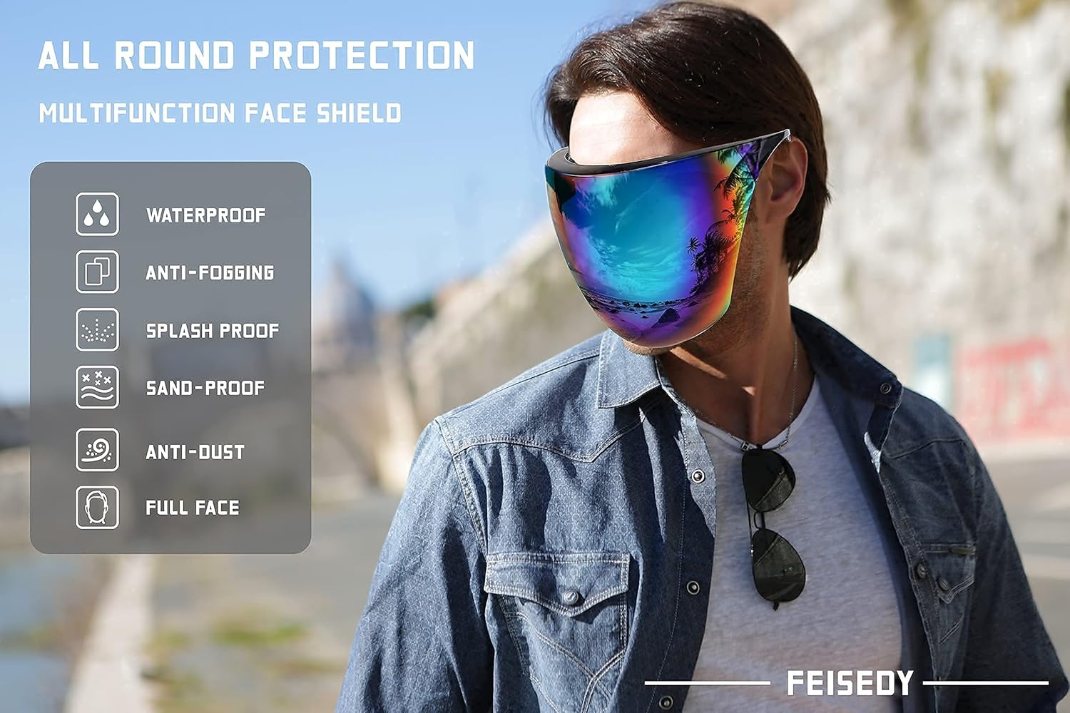 FEISEDY Full Face Shield Visor – Anti-Fog Polycarbonate Eye Protection with Mirror Lens