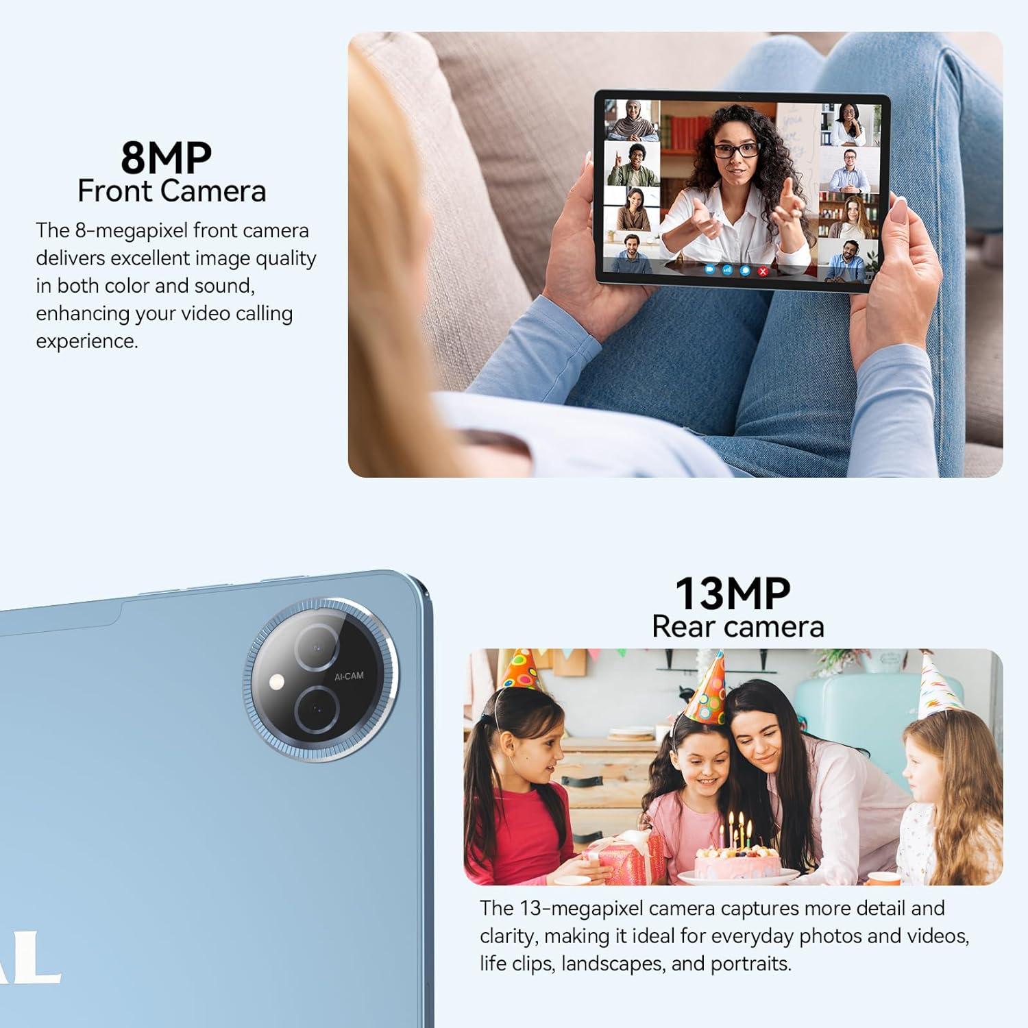 • 13MP rear camera + 8MP front camera for capturing every moment