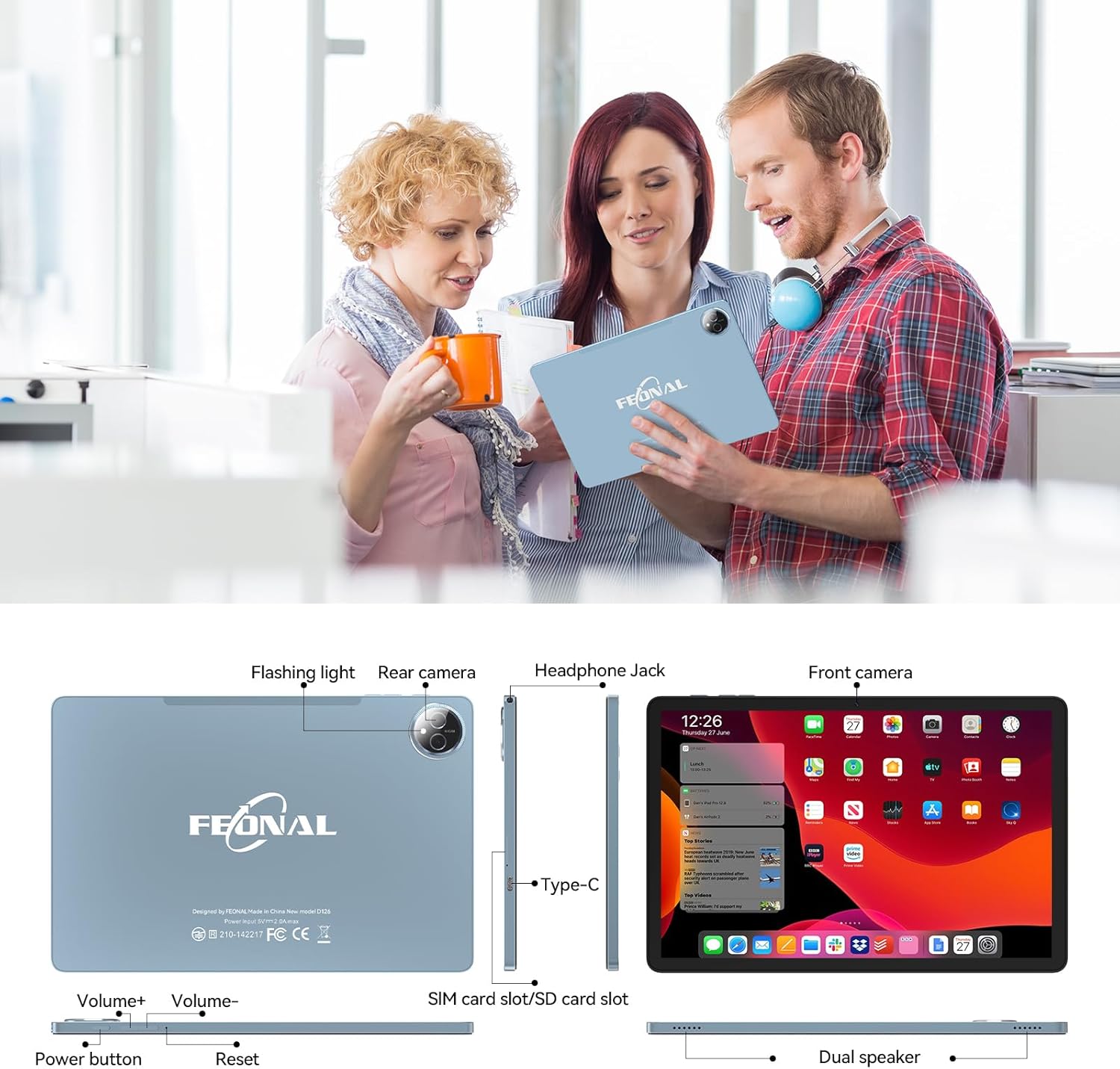 Experience the future of mobile computing with the FEONAL 11-inch Android 15 tablet, featuring the latest 2026 technology and an ultra-smooth MTK8786 octa-core processor. This powerful device delivers exceptional performance for work, entertainment, and everything in between. With 16GB RAM (8GB physical + 8GB virtual) and 128GB internal storage, expandable up to 1TB, you’ll never have to worry about running out of space for your apps, games, photos, and movies. The stunning 11-inch Incell FHD display with 1280×800 resolution brings your content to life with vivid colors and sharp detail, while the dual stereo speakers create an immersive audiovisual experience. Designed for ultimate convenience, this tablet features dual 4G LTE SIM card slots with VoLTE support, allowing you to make calls and use data simultaneously. Stay connected anywhere with fast 2.4GHz/5GHz WiFi and Bluetooth 5.0. The 7000mAh battery provides up to 480 hours of standby time, so you can use your tablet all day without charging. Capture beautiful moments with the 13MP rear camera and 8MP front camera, perfect for video calls, photography, and documentation. Additional features include GPS navigation, wireless screen projection, reading mode, eye protection mode, and dark mode for comfortable extended use. Whether you’re a student, professional, or casual user, this feature-packed tablet is perfect for home, office, or travel use.