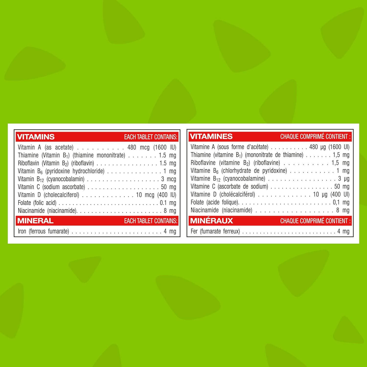 Give your child the nutritional support they need with Flintstones Plus Iron Chewable Multivitamins, the trusted children’s vitamin brand recommended by pediatricians for over 50 years. These great-tasting chewable tablets are specifically formulated for kids who may not get enough iron from their diet, especially those who are picky eaters or don’t consume enough meat, fish, and vegetables. Each daily vitamin provides essential vitamins and minerals to support normal growth and development during those crucial growing years. Made with careful attention to taste and nutrition, Flintstones Plus Iron makes taking vitamins something kids actually look forward to. The trusted choice for generations of families, these pediatrician-recommended multivitamins help fill nutritional gaps in your child’s diet so they can get the daily nutrients they need for optimal health. Give your child the foundation for healthy development with a vitamin brand parents have trusted since 1968.