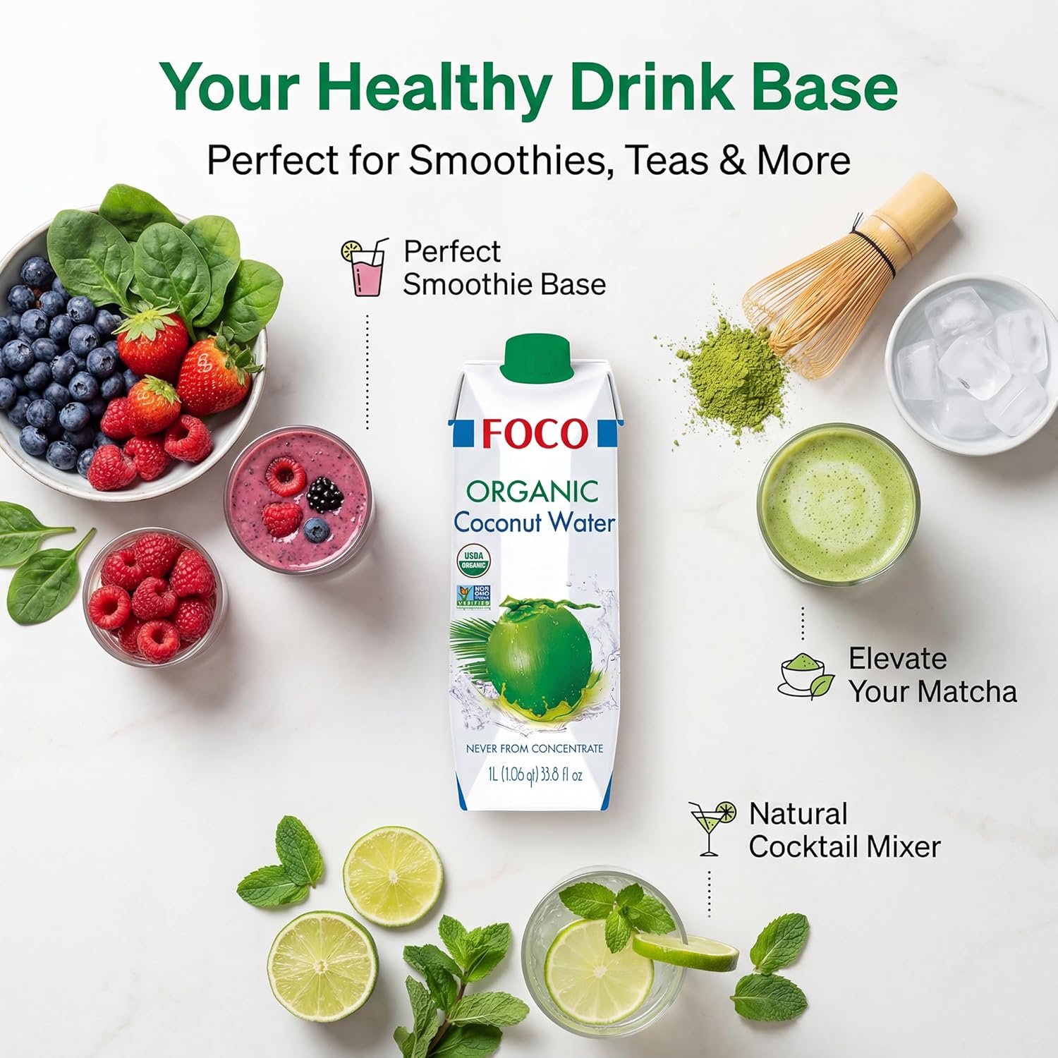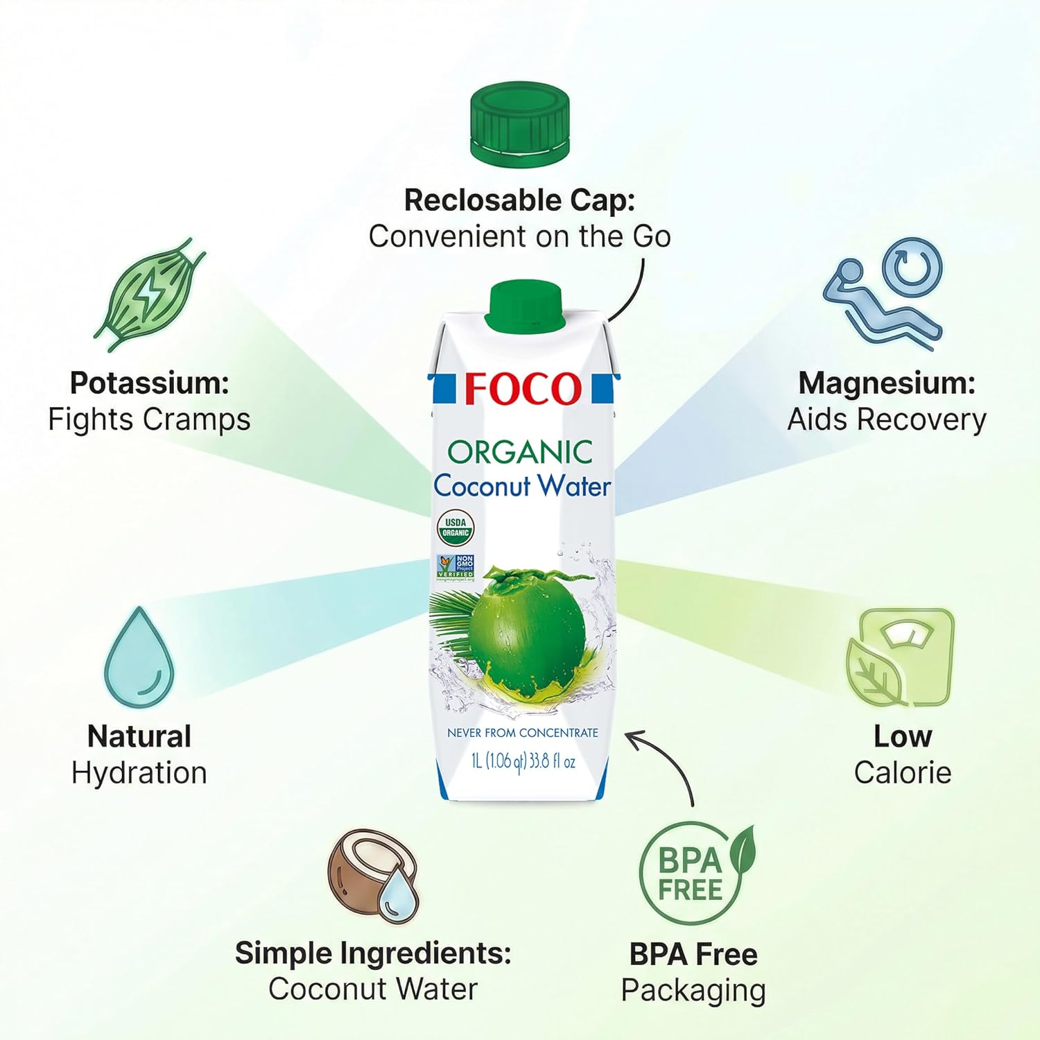• PURE ORGANIC HYDRATION: Made from 100% organic coconuts; Non-GMO certified and free from artificial additives.