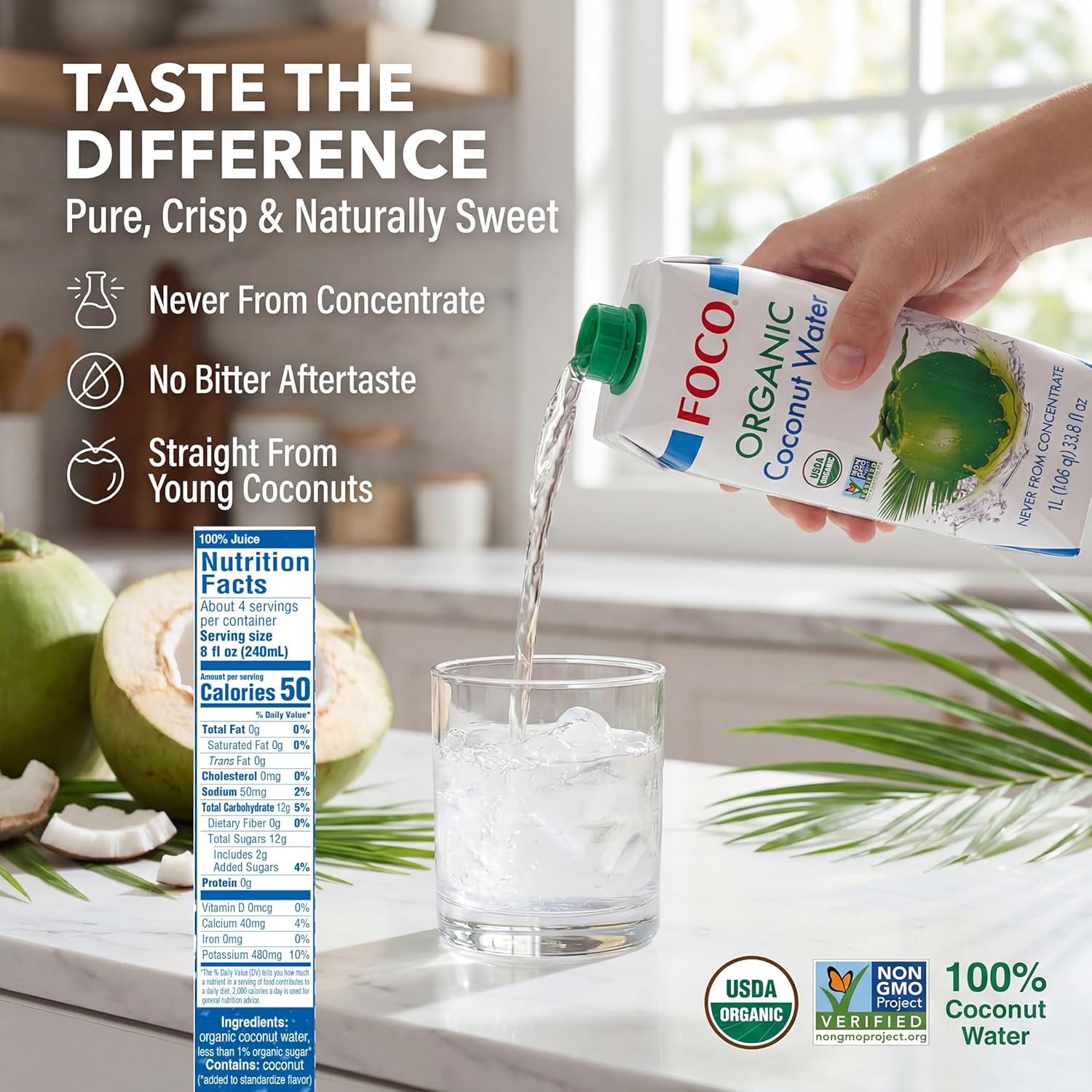 • NEVER FROM CONCENTRATE: Enjoy the fresh, natural taste of young coconuts processed quickly to preserve flavor.