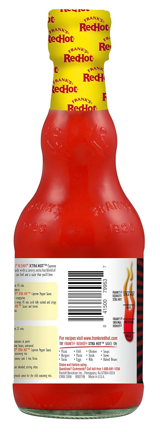 PERFECT FOR COCKTAILS & MARINADES: Elevate your Bloody Mary recipe with a few dashes of this extra-hot sauce, or use it as a potent base for homemade marinades and BBQ sauces. Whether you are grilling, baking, or dipping, Frank’s RedHot Xtra Hot brings the fire that flavor fanatics crave.