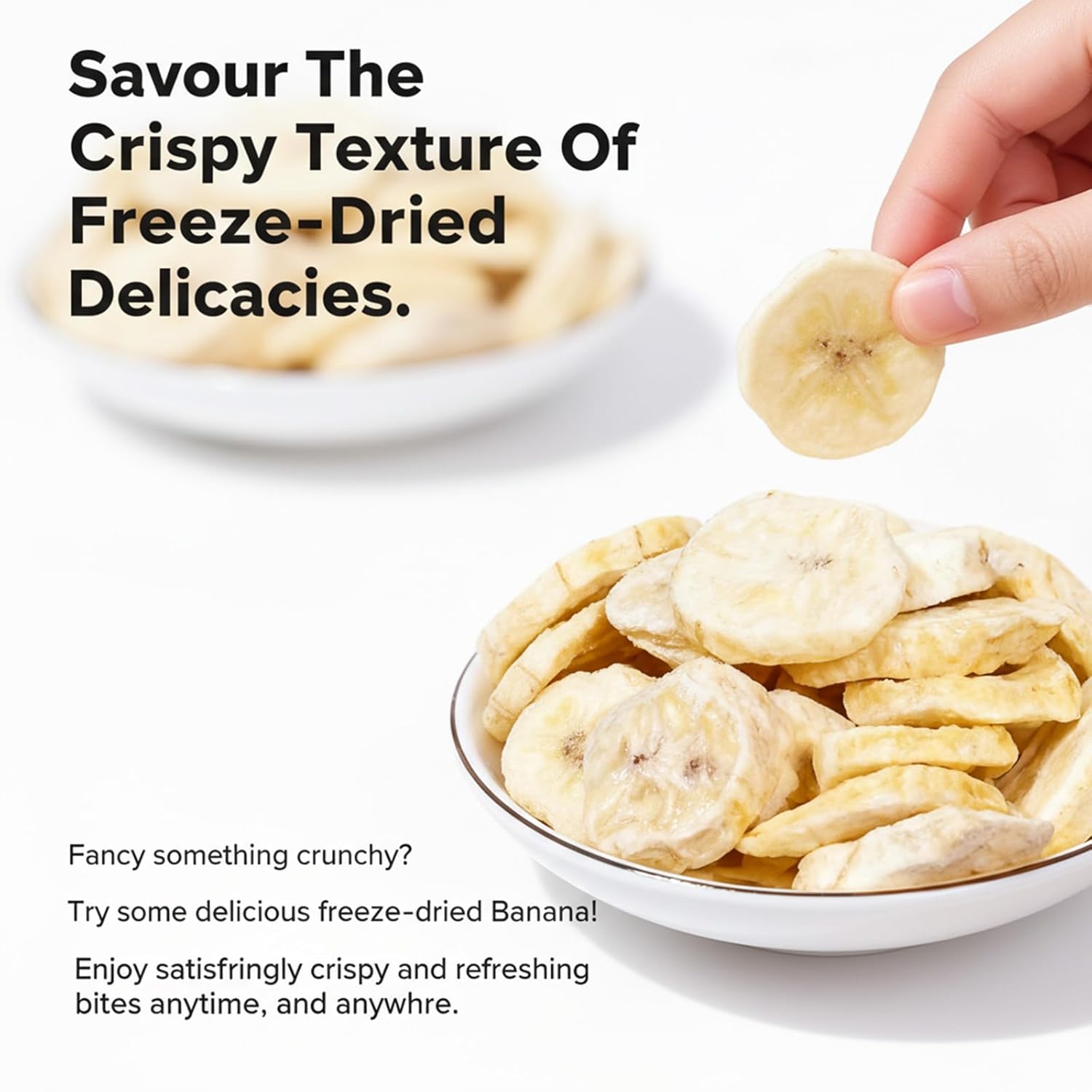 • Nutrient Dense: It takes approximately 10kg of fresh bananas to produce 1kg of our freeze-dried slices, ensuring a concentrated source of potassium and energy in every bite.