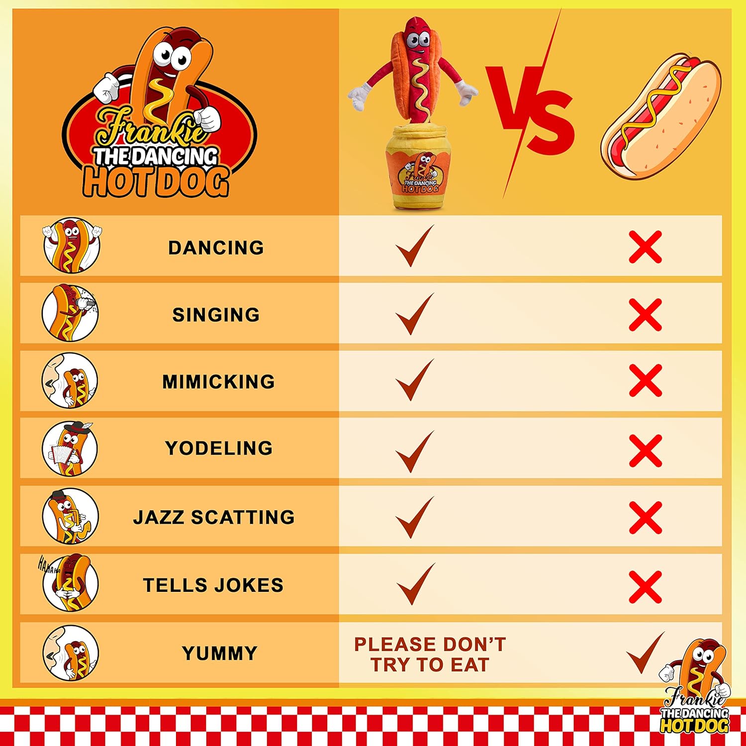• HILARIOUS INTERACTIVE TOY: The Gagster Dancing Hot Dog sings classic yodels and funky hip-hop tracks while dancing along to the beat.