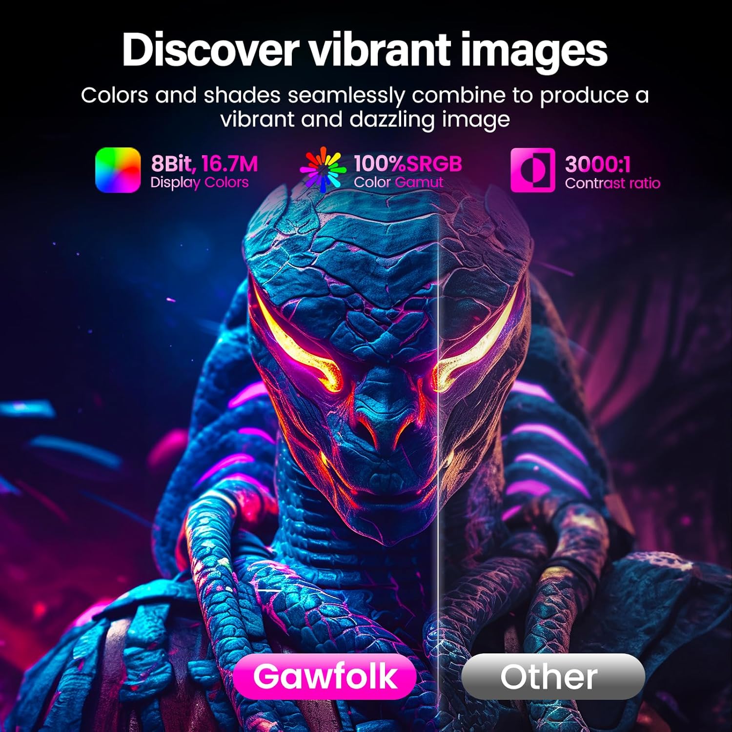 Streamline your gaming setup with powerful built-in speakers that deliver clear, robust audio without the need for external desk speakers. Gawfolk prioritizes your comfort with advanced Eye Care technology, including a flicker-free backlight and a low blue light mode. These features work together to minimize eye strain and fatigue during marathon gaming sessions or extended work projects.