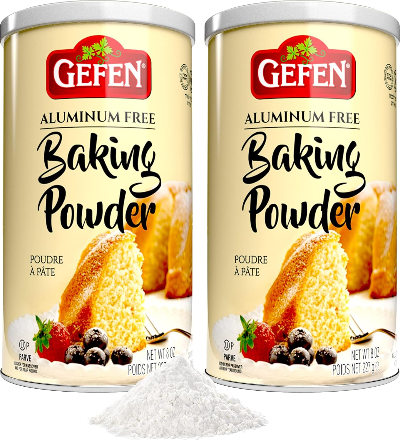 Elevate your baking game with Gefen Aluminum-Free Baking Powder, the essential secret ingredient for light, fluffy, and delicious baked goods. This convenient 2-pack bundle offers a total of 16 oz (1 lb) of premium double-acting leavening power, ensuring you always have enough on hand for your busiest baking days. Packaged in durable, resealable 8 oz canisters, our baking powder stays fresh longer, protecting the quality and potency of the leavening agent.
