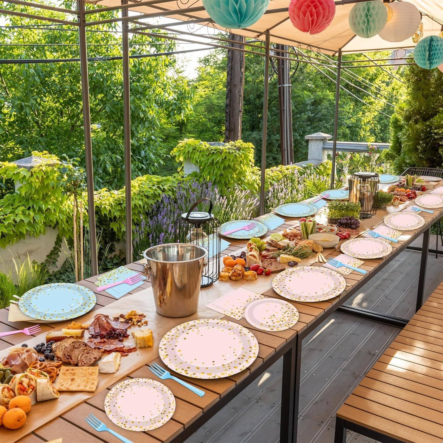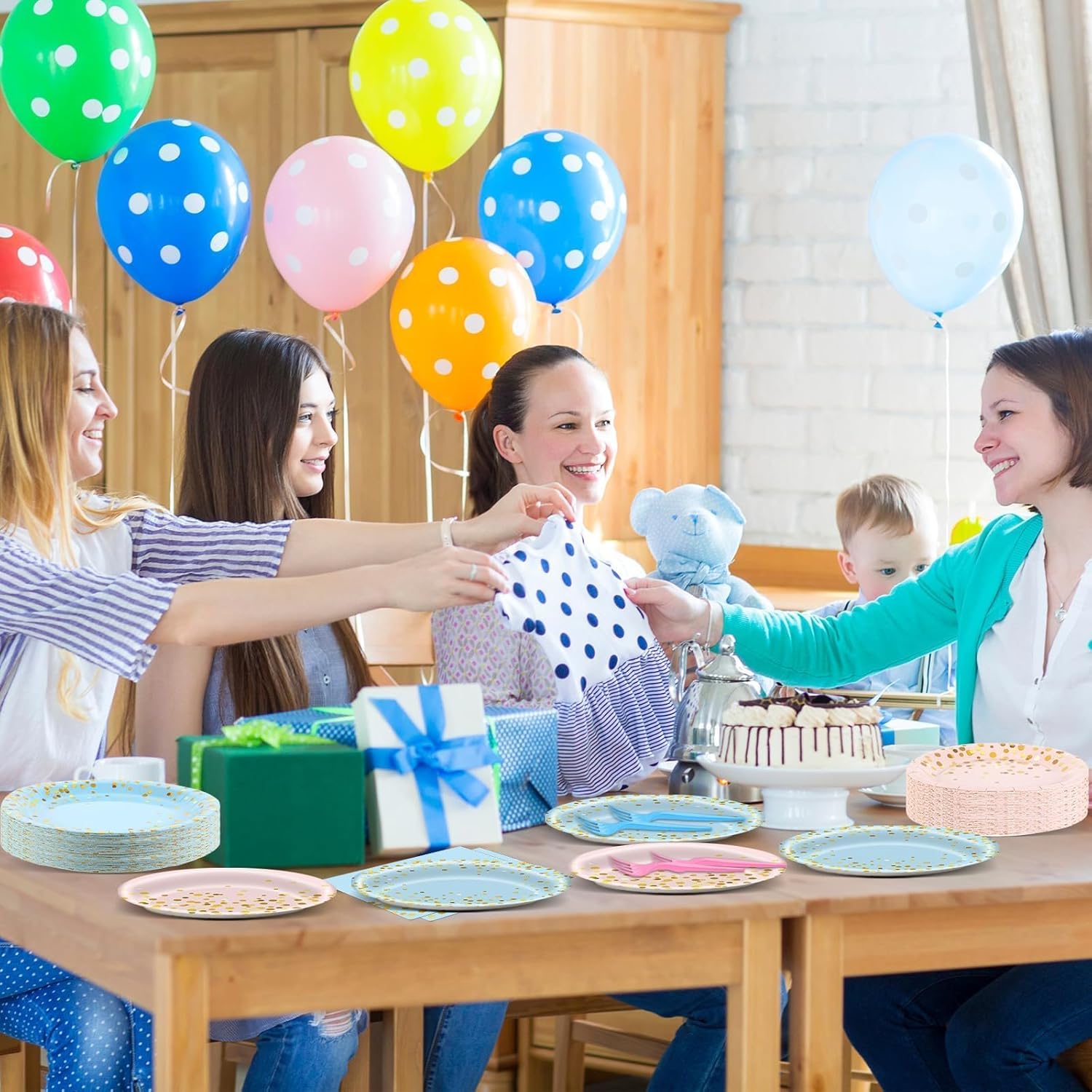 ✨ SOPHISTICATED DESIGN: The vibrant pink and blue backgrounds aren’t just cute; they set the stage for your big reveal. The modern gold dot pattern adds a touch of class, ensuring your table settings look fantastic in photos. These plates pair seamlessly with other decorations like banners, tablecloths, and backdrops for a cohesive look.