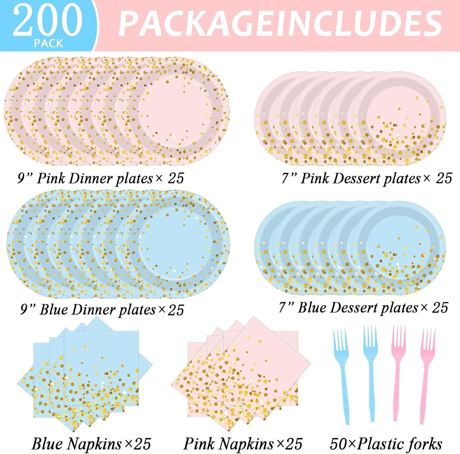 🎉 ULTIMATE GENDER REVEAL DECORATIONS: Create a memorable moment with this all-in-one party kit! Designed to serve 50 guests, this 200-piece set perfectly balances the classic ‘Boy or Girl’ anticipation with a sophisticated Blue and Pink theme featuring elegant gold dot accents. It’s the ideal foundation for your baby shower, gender reveal, or birthday celebration.