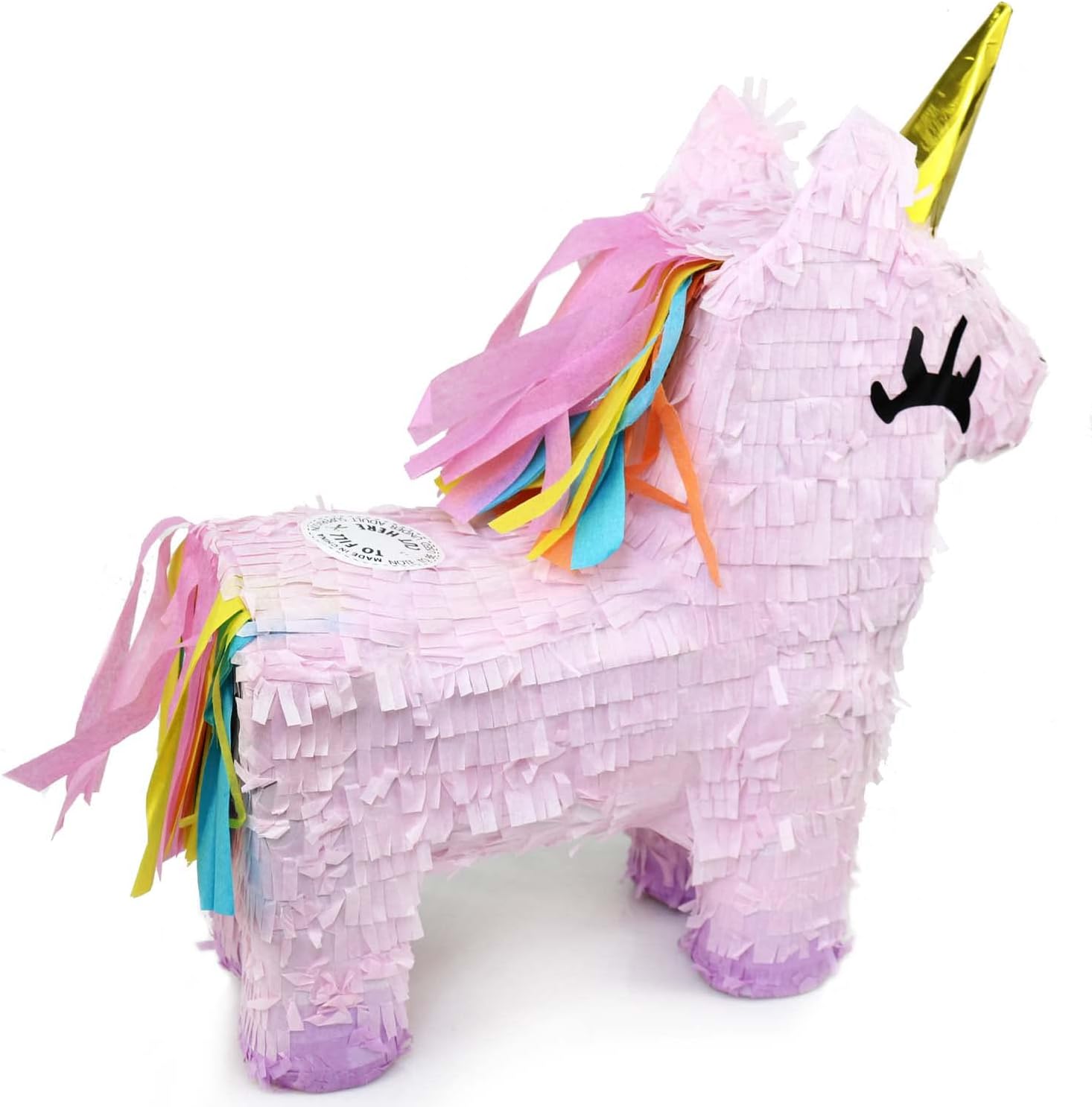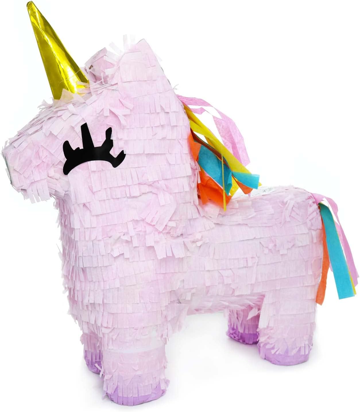 UNIQUE DESIGN & PREMIUM QUALITY: Handcrafted with vibrant pink tissue paper and sturdy corrugated cardboard, this unicorn piñata is built to last through the excitement of the party. The whimsical 3D design features a beautiful horn and festive fringes, doubling as a stunning table decoration or photo prop before the fun begins.
