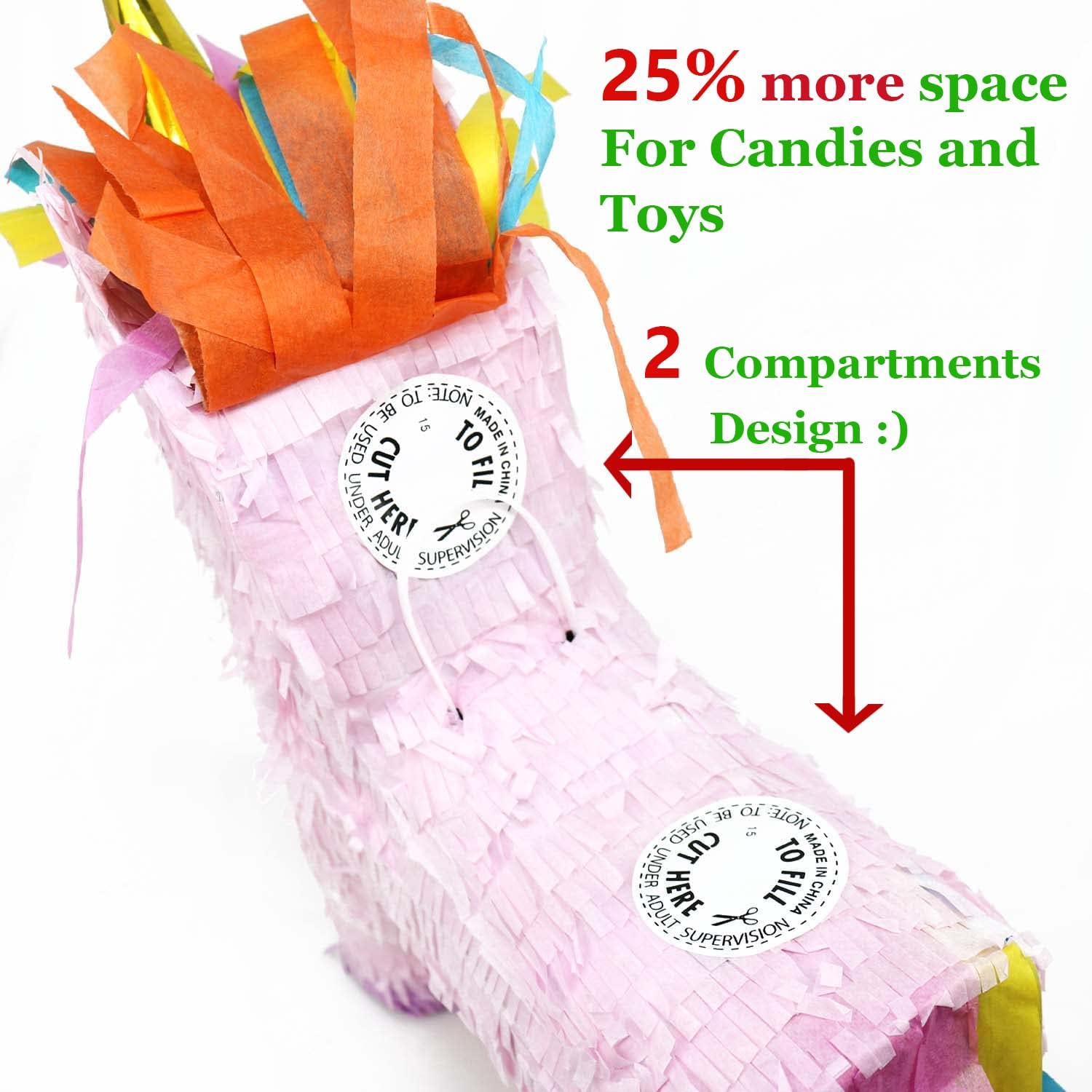 SAFE & ECO-FRIENDLY: Safety is our priority. Made from eco-friendly, non-toxic materials, this piñata is safe for children of all ages. It is perfect for creating unforgettable memories of laughter and excitement.