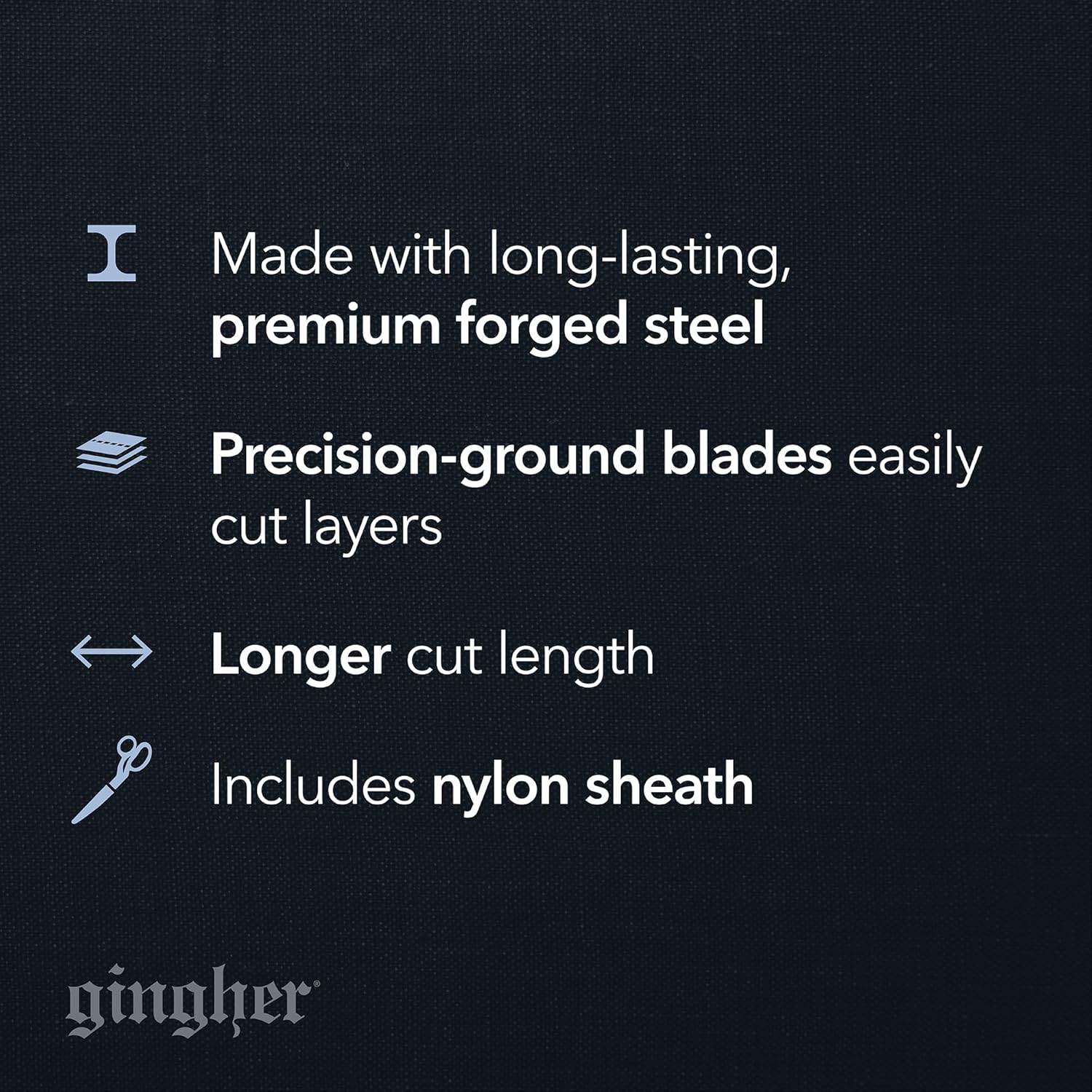 Elevate your crafting experience with the Gingher 8-Inch Dressmaker’s Shears, the gold standard for precision cutting in sewing and quilting. Meticulously crafted from premium forged stainless steel, these shears feature a precision-ground knife edge that allows you to slice through multiple layers of fabric effortlessly, all the way to the tip. The iconic 8-inch blades are finished with a double-plated chrome-over-nickel coating, ensuring a striking shine that resists rust and wear over time. Designed for both professional tailors and passionate hobbyists, the ergonomic bent handle keeps fabric flat against the cutting table, ensuring accuracy, comfort, and smooth cuts every time. Whether you are trimming seams, cutting out patterns, or managing long swaths of material, these scissors provide the control and durability you need. Each pair includes a custom-fit nylon protective sheath, keeping the blades safe and sharp during storage.