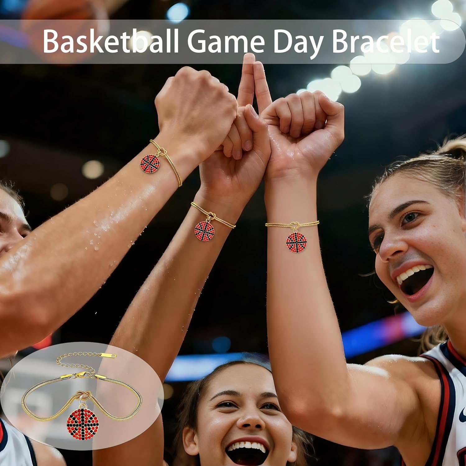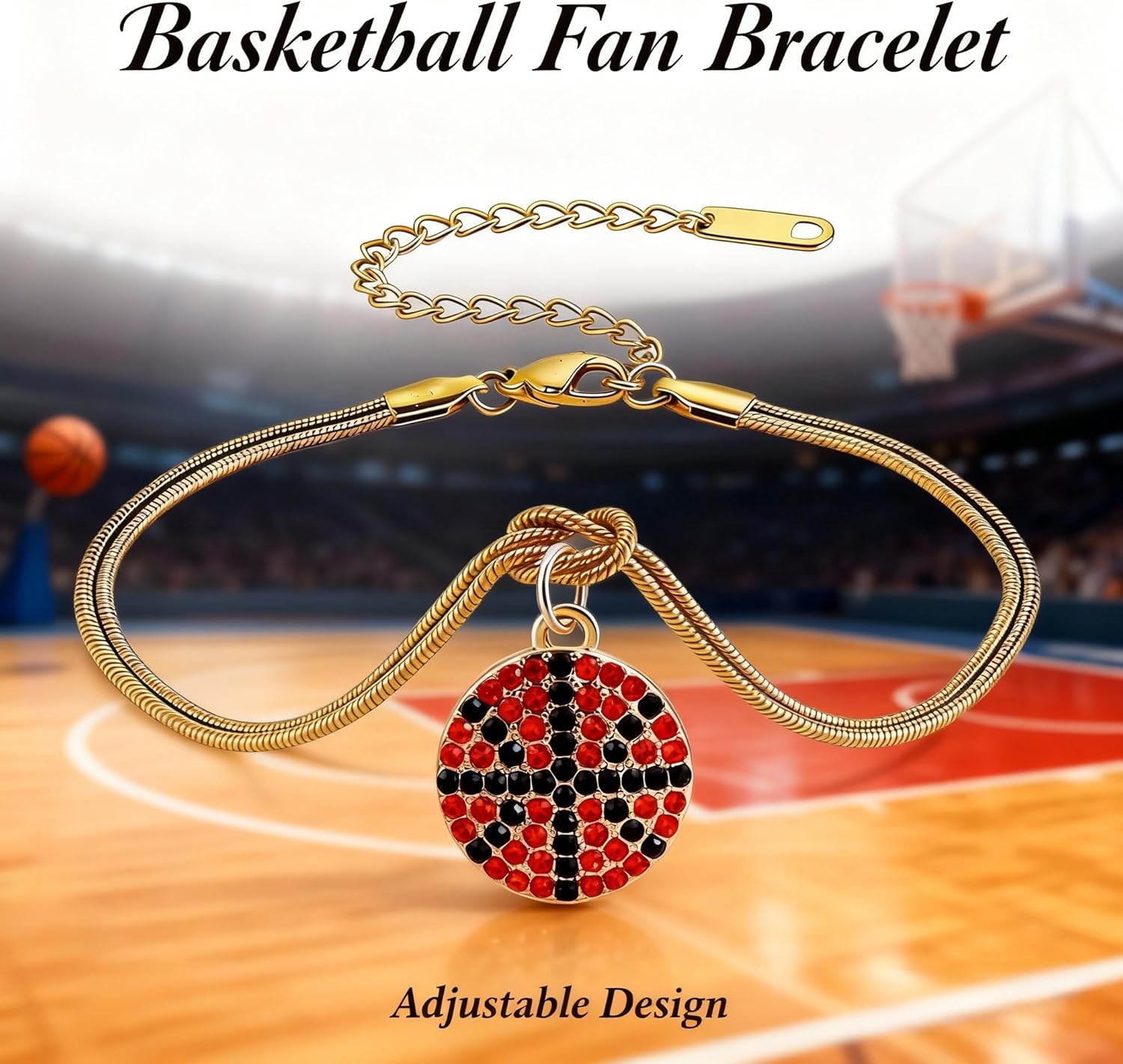 Premium gold sport charm bracelet with softball, football, soccer, basketball designs. Non-tarnish, waterproof, adjustable knot closure. Perfect gift for women and athletes.